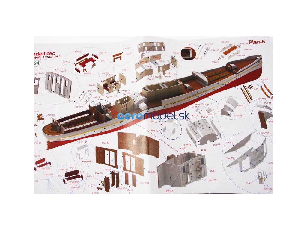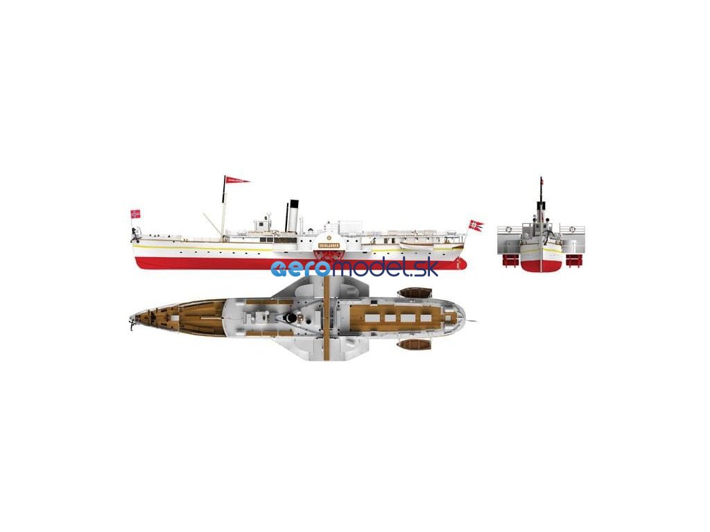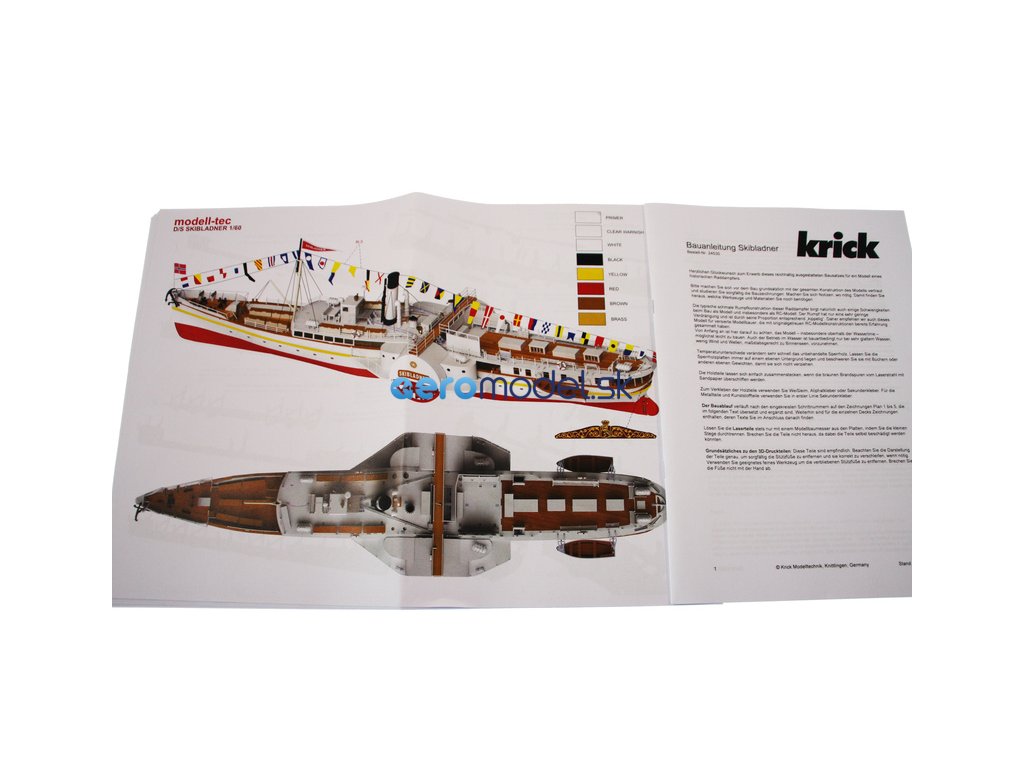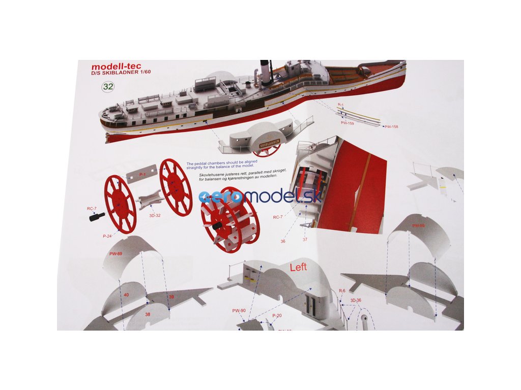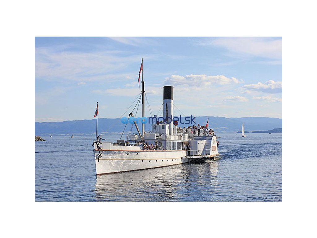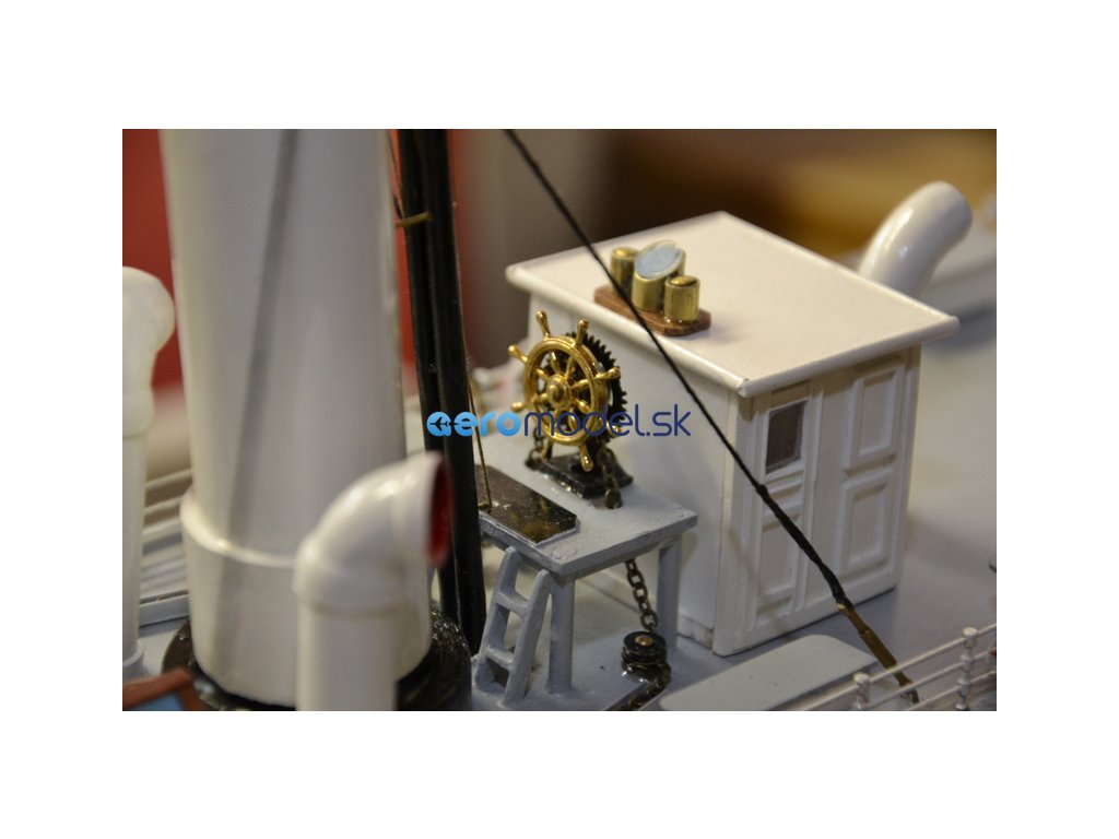 Stavebnice modelu Norského kolového parníku, Modell-Tec D/S Skibladner 1:60 kit, s množstvím detailů o délce 83 cm. Model lze sestavit jako neplovoucí nebo jej můžete vybavit RC soupravou a elektro pohonem a provozovat jako funkční loď.