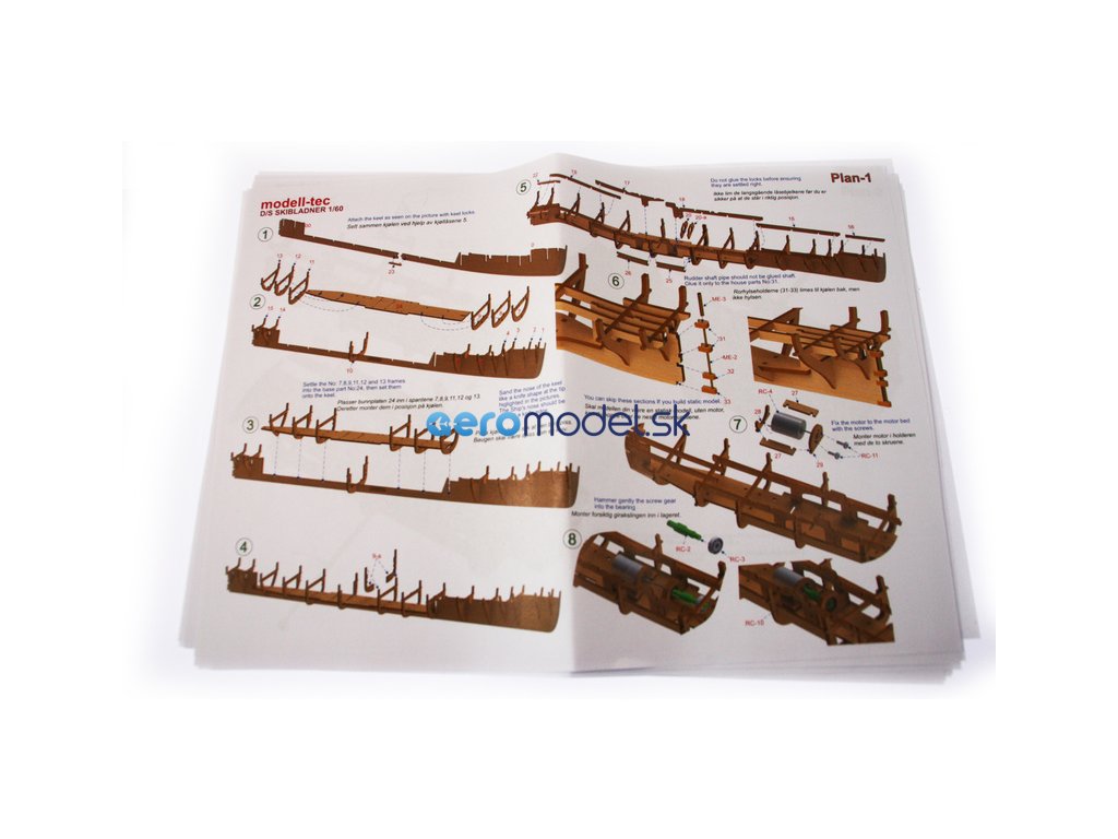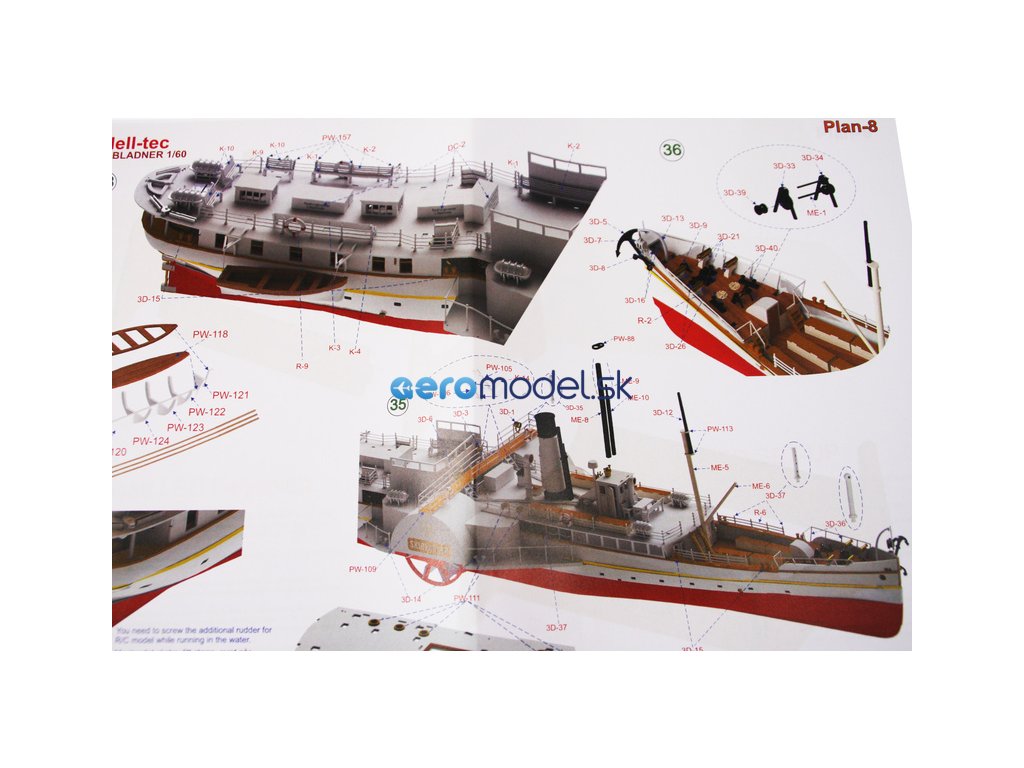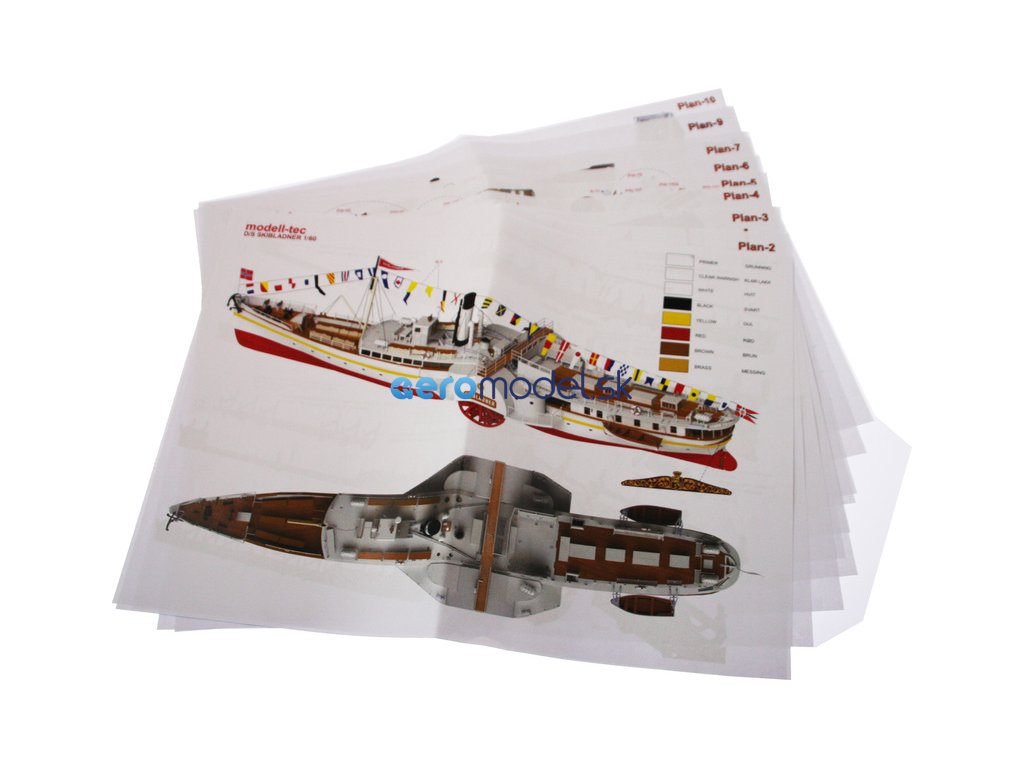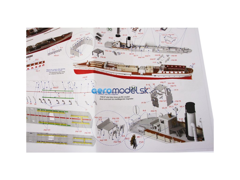 Set obsahuje kompletní sadu výkresové dokumentace modelu v měřítku 1:1 s postupem stavby, na výkrese jsou pečlivě označeny díly a je zde i seznam jednotlivých součástí modelu.