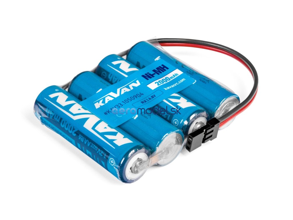 Čtyřčlánková přijímačová NiMH akumulátorová sada 4,8 V 2000 mAh s kabelem se servokonektorem JR/UNI. Články KAVAN 1.2V 2000 mAh s nízkým samovybíjením, max. vybíjecí proud 6A, max. nabíjecí proud 1A. Uspořádání na plocho vedle sebe. Rozměry: 57x53,5x14,5mm. Hmotnost: 115 g.