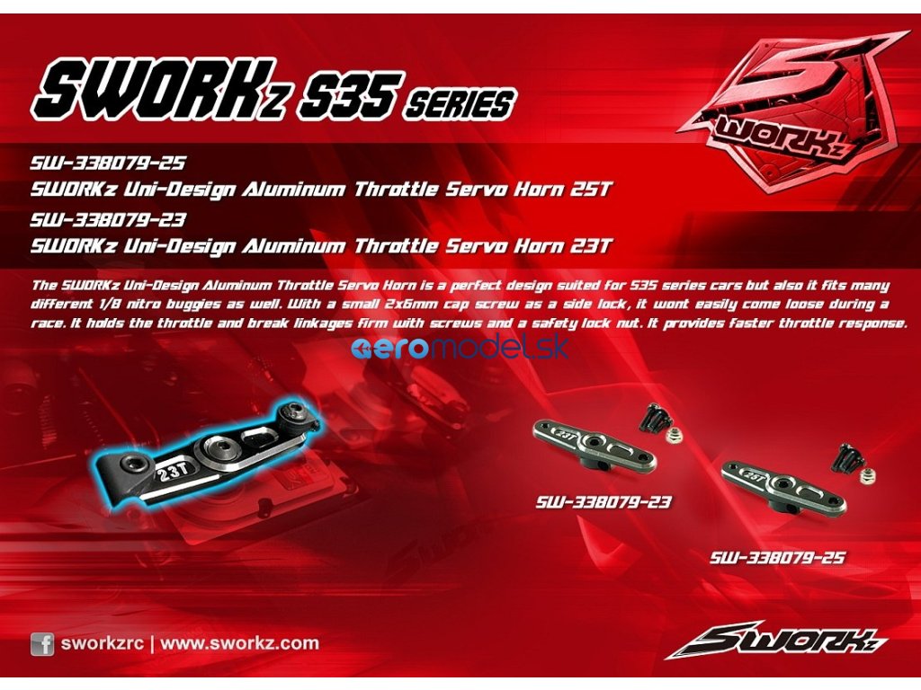 SWORKz Uni-Design 2-pojistná hlíníková černá servo dvouramená páka, 25 zubů, 1 ks.