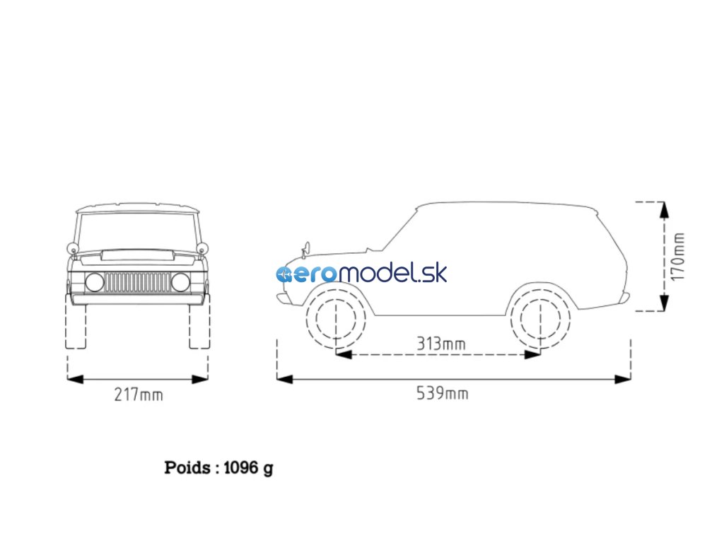 POZNÁMKA: Karoserie se prodává jako stavebnice - je třeba ji složit a nalakovat. Přizpůsobení konkrétnímu podvozku je DIY ("udělej si sám") a může se u jednotlivých modelů lišit.