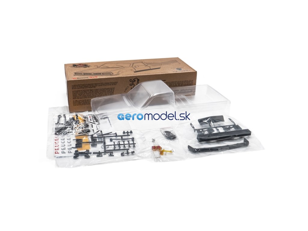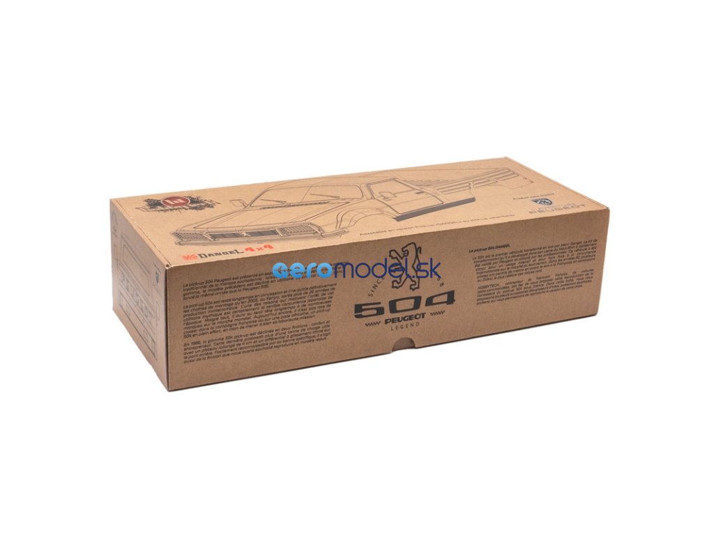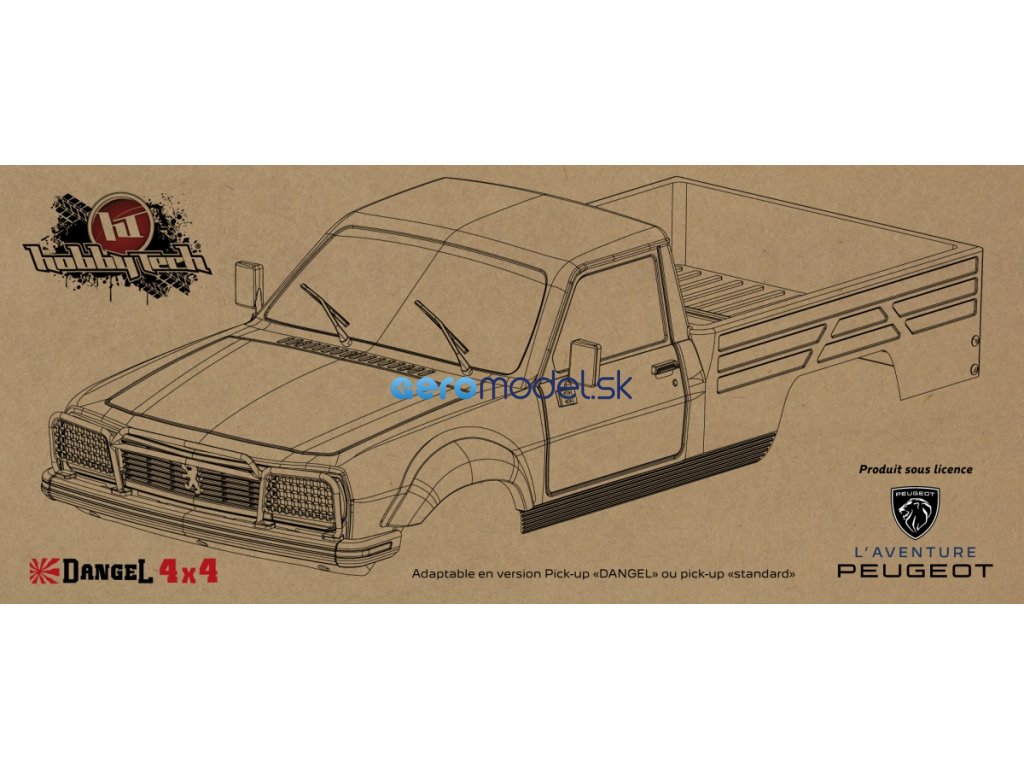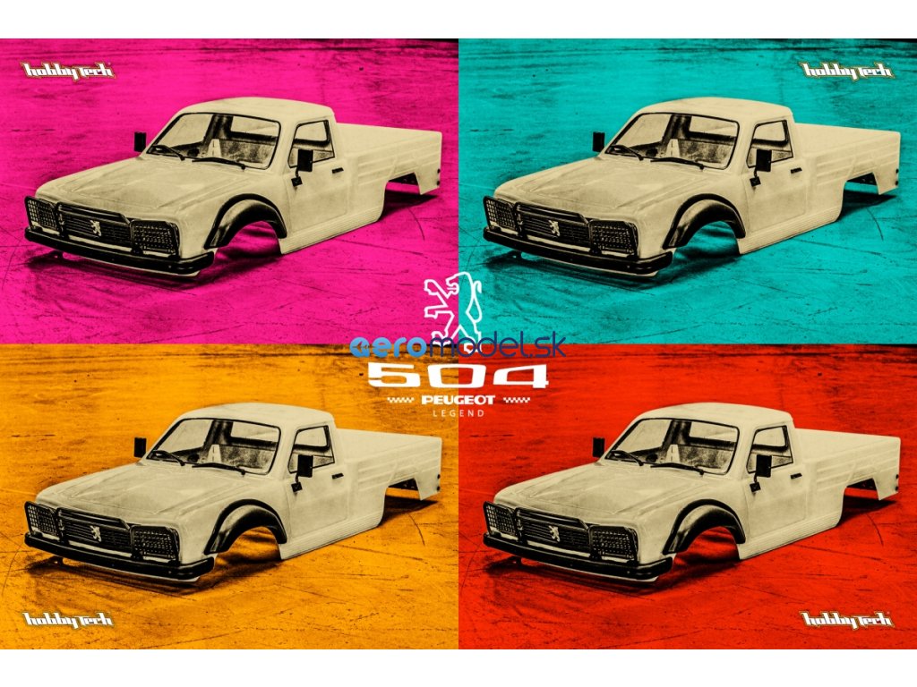 HOBBYTECH, francouzský designér a výrobce rádiem řízených podvozků/modelů, vám s hrdostí nabízí tuto reprodukci karoserie pick-upu 504 v licenci. V této krabici nabízíme několik doplňků (lemy blatníků, ochrana světlometů, polepy), které vám umožní reprodukovat verzi dle vašeho výběru.