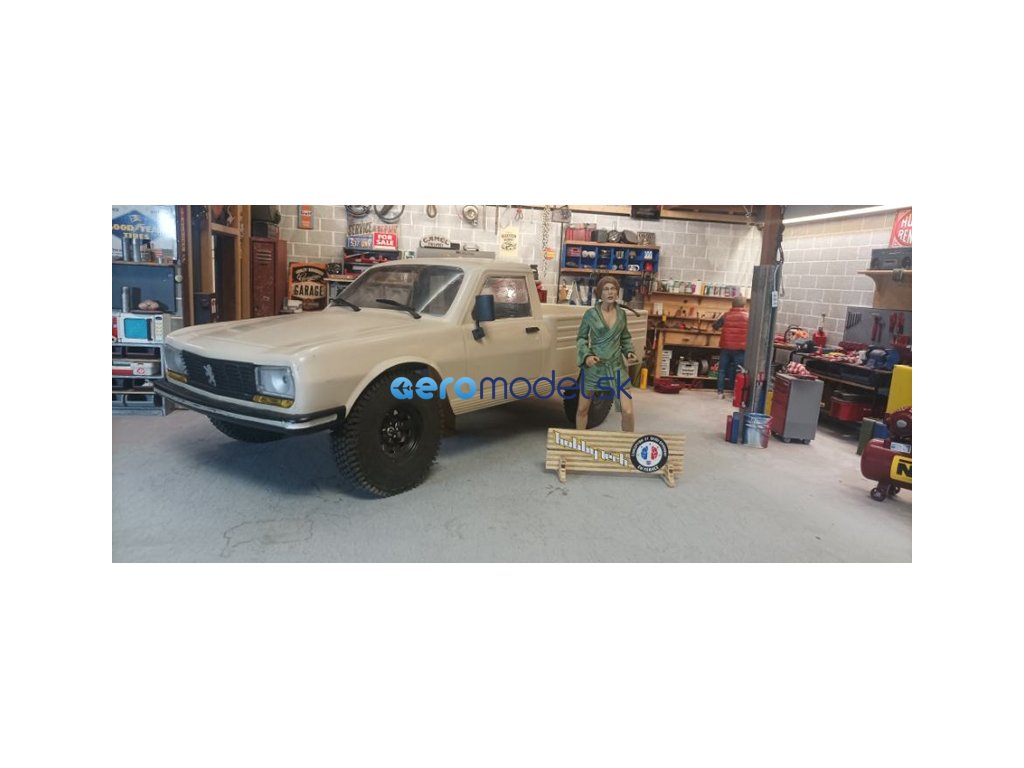 V roce 1986 byla řada pick-upů 504 k dispozici ve dvou provedeních: comfort a contractor. Poslední jmenovaný nabízel více než tunu užitečného zatížení s o 4 cm delším ložem a samosvorným diferenciálem na zadní nápravě. Je snadno rozpoznatelný podle specifické lopaty a je to také povrchová úprava, kterou jsme chtěli reprodukovat ve zmenšeném modelu.