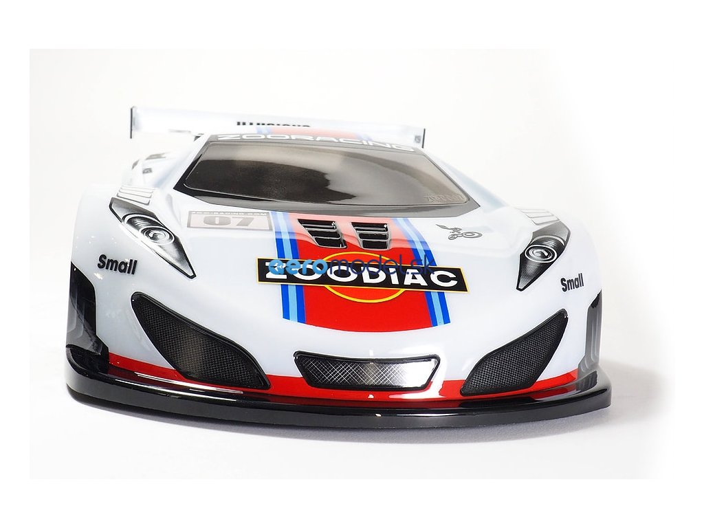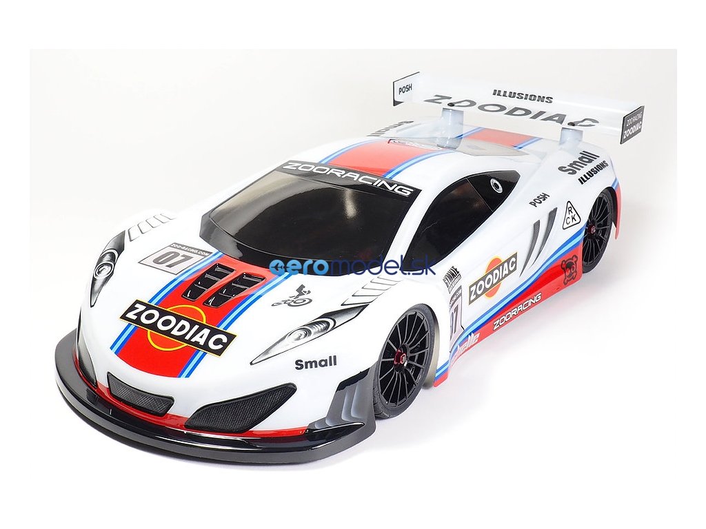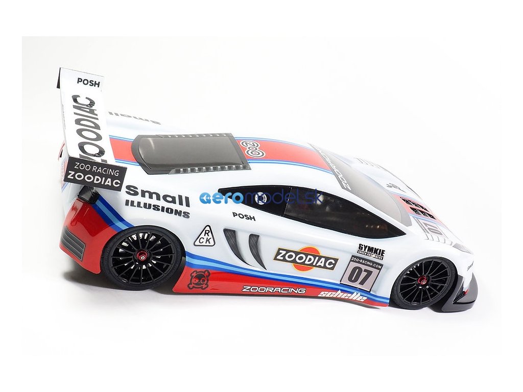 Karoserie Zoodiac GT pro cestovní vozy 190 mm je nejnovější vysoce výkonnou karoserií ZooRacing v měřítku 1/10 a naší první verzí pro třídu GT. Cílem bylo vytvořit stylovou, ale efektivní karoserii s pokročilou aerodynamikou a zároveň nabídnout poněkud zmenšený vzhled, který zajistí, že karoserie splňuje všechna aktuální pravidla třídy GT/USGT. Nejprve jsme začali s nízko posazenou siluetou, ke které jsme přidali vytvarované sekce blatníků, které poskytují dostatek prostoru i pro větší pneumatiky třídy GT, zatímco nízkoprofilová část přední kapoty optimalizuje proudění vzduchu kolem blatníků a směrem k obrovskému čelnímu sklu. Ten je navržen tak, aby nabídl mírný design kabiny pro nejlepší možné proudění vzduchu směrem k zadní části kufru a zadnímu křídlu.