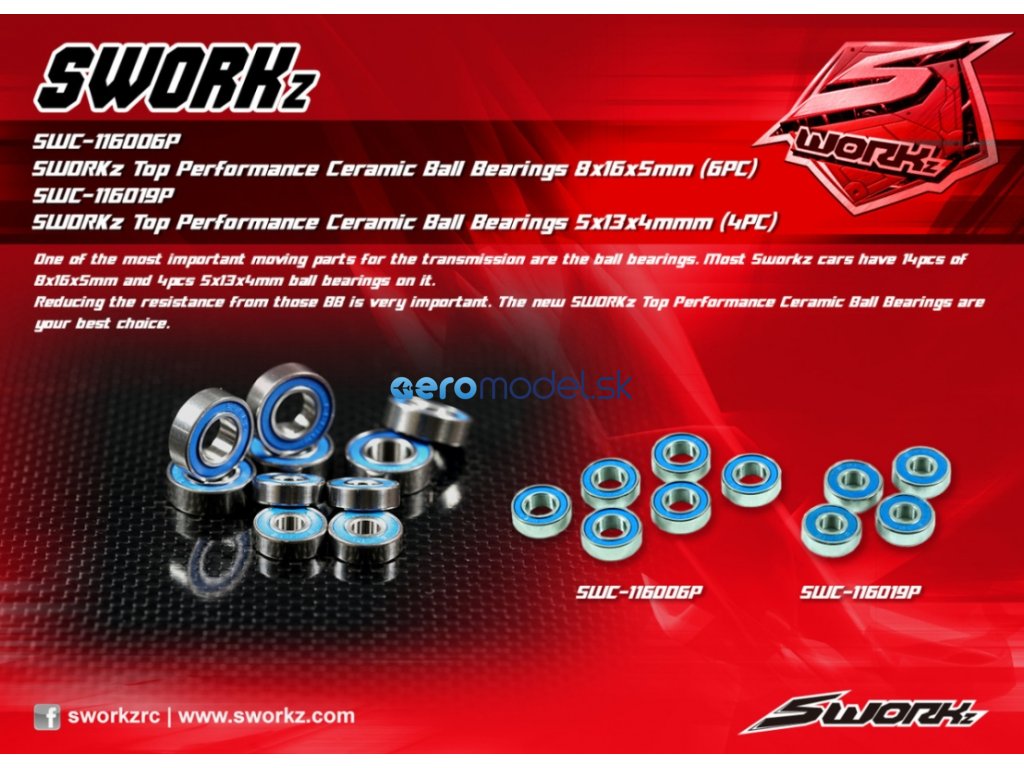 Jednou z nejdůležitějších pohyblivých částí převodovky jsou kuličková ložiska. Většina podvozků Sworkz v ní má 14 ks kuličkových ložisek 8x16x5 mm a 4ks 5x13x4 mm.