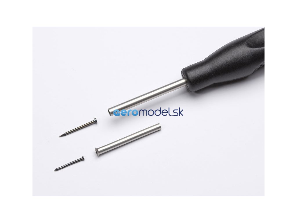 Praktický zatloukač hřebíků Pro, který drží mosazný hřebík dokud jej přesně neumístíte. Poté stačí hřebík zatlačit nebo zatlouct. Ergonomicky tvarovaná rukojeť pro pohodlnou práci. Pro hřebíky do 2 mm. Součástí vystřeďovací pouzdro pro menší hřebíky s průměrem hlavy do 1 mm.