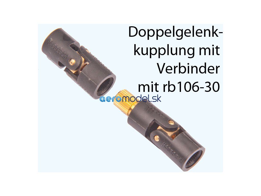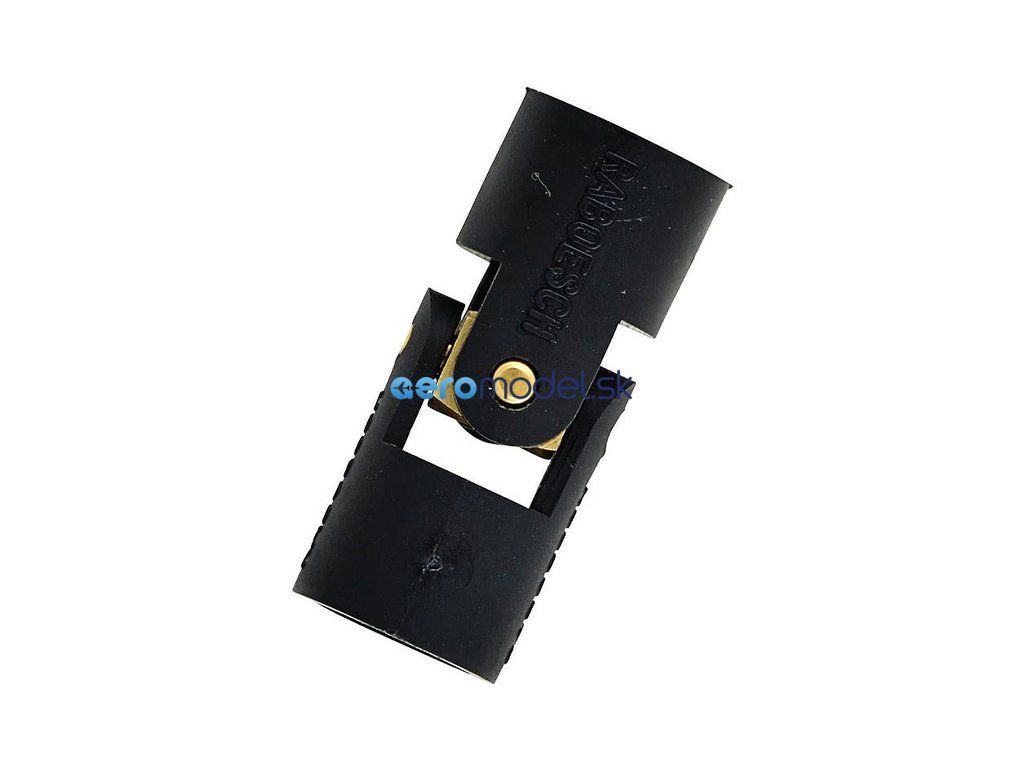 Raboesch kardanový kloub lodní spojky nylon, mosazný kamen s čepy. Univerzální pro použití s mosaznými spojkami. Hmotnost 5,2g, délka 31,7mm, průměr 13mm. Potřebné mosazné vložky jsou k dispozici s širokou škálou otvorů nebo velikostí závitů. To umožňuje konfigurovat spojku lodi pro jakoukoli kombinaci hřídele motoru a sloupku.