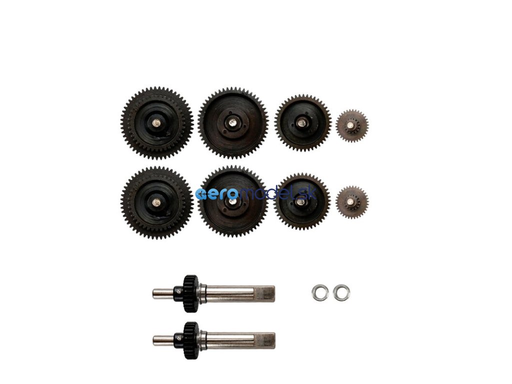 Ocelové ozubené kola/pastorky, levé a pravé, 1:4, dlouhá hřídel