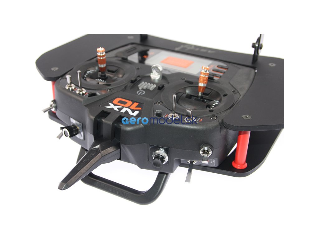 Vysílač Spektrum NX přesně zapadne do výřezů v horní i spodní desce a pevně v něm drží. Takto sestavený celek můžete vložit jako komplet do svého přepravního kufru.