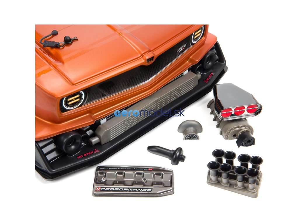 RC model auta Arrma Felony 6S BLX 4WD v mierke 1:7 je preplňovaný americký supercar, ktorý dokáže jazdiť rýchlosťou viac ako 120 km za hodinu! Hliníkový podvozok, oceľové prevody a hriadele, hliníkové veže a tlmiče, vysielač Spektrum® DX3, prijímač SR6110AT s technológiou AVC a telemetriou.