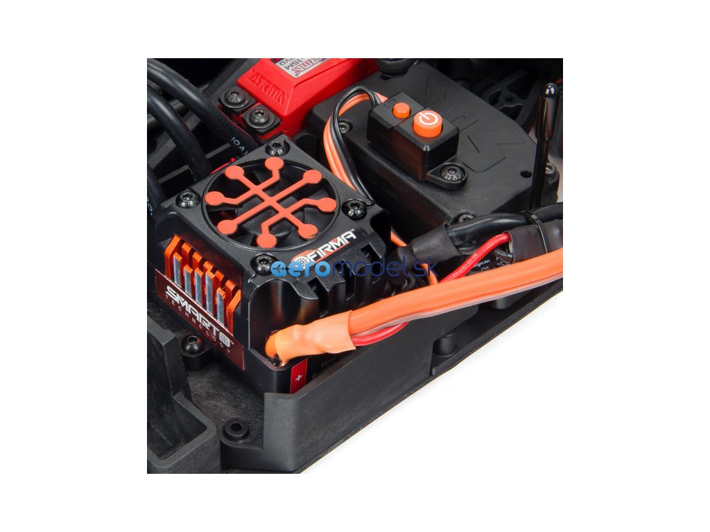V modeli sú integrované komponenty Spektrum® Firma™ Smart™. Ak použijete dvojicu LiPol batérií SMART, môžete na vysielači vidieť indikáciu stavu napätia prostredníctvom LED diódy. Navyše, ak použijete kompatibilný vysielač Spektrum vyššej triedy s displejom, budete mať k dispozícii ďalšie telemetrické údaje, ako sú otáčky motora, teplota regulátora, napätie prijímača (BEC), napätie pohonného akumulátora v reálnom čase.