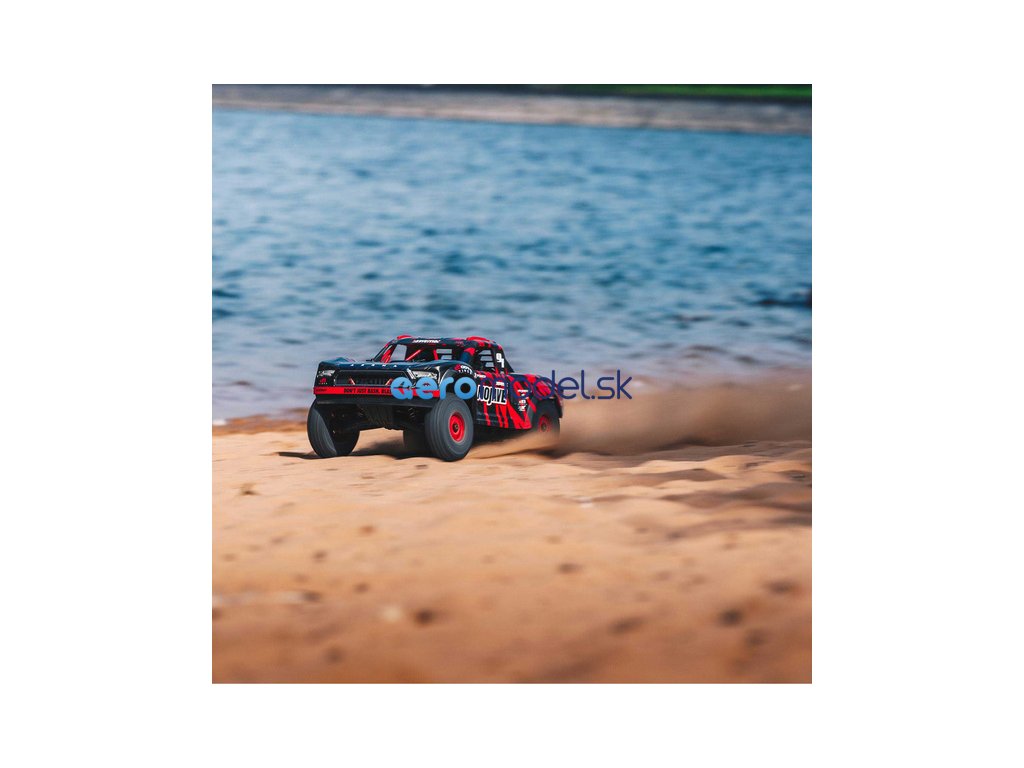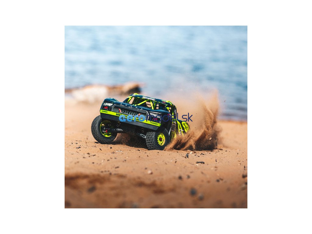 RC model auta Arrma Mojave 6S BLX 4WD v mierke 1:7 je pripravený na extrémnu jazdu v teréne aj na ceste a je plne vybavený komponentmi Spektrum. Odolný hliníkový podvozok zaručuje pevnosť aj pri rýchlostiach nad 90 km/h!