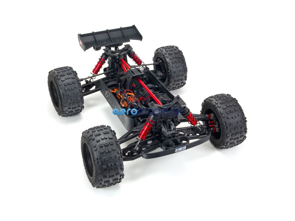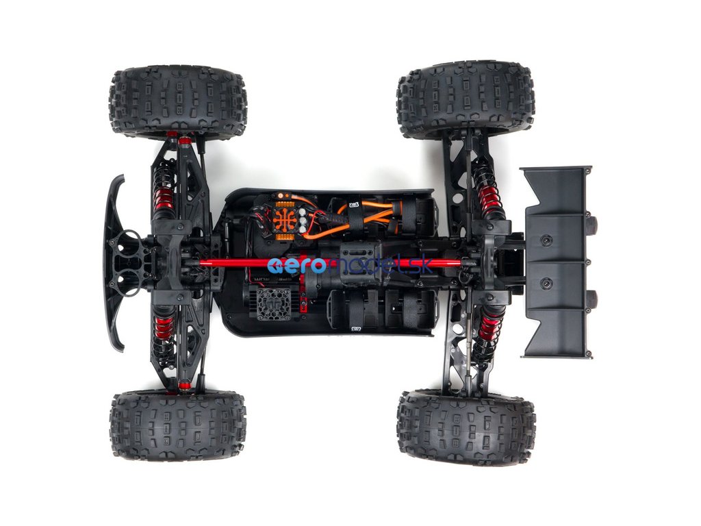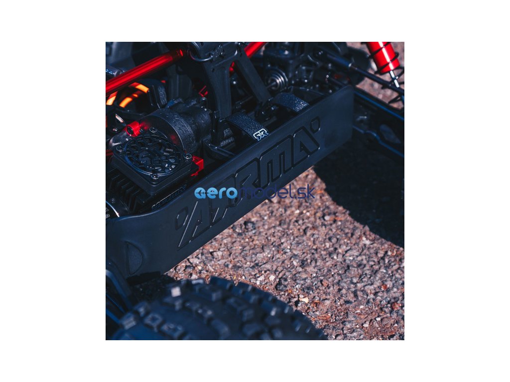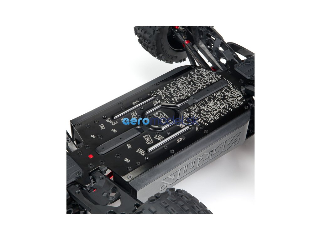 Podvozok modelu Outcast 8S BLX tvorí 4 mm profilovaná doska z vysoko odolného hliníka 6061-T6. Jedinečný dizajn podvozku je zvýraznený laserom vyleptanou grafikou s logom Arrma.