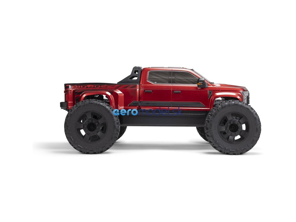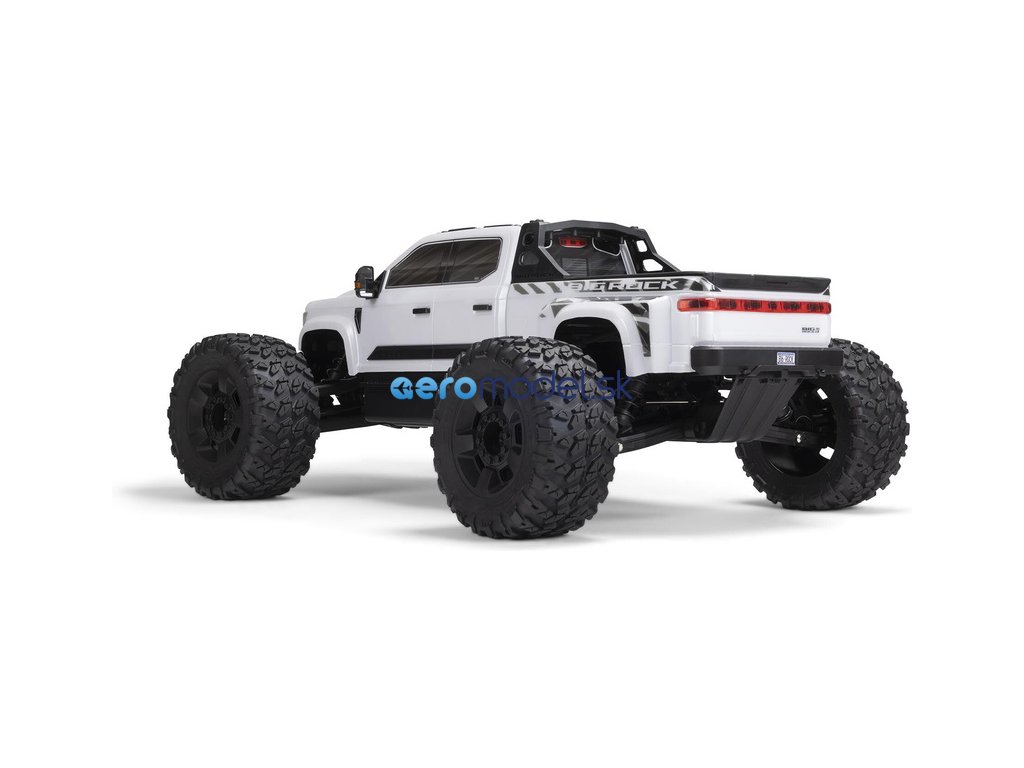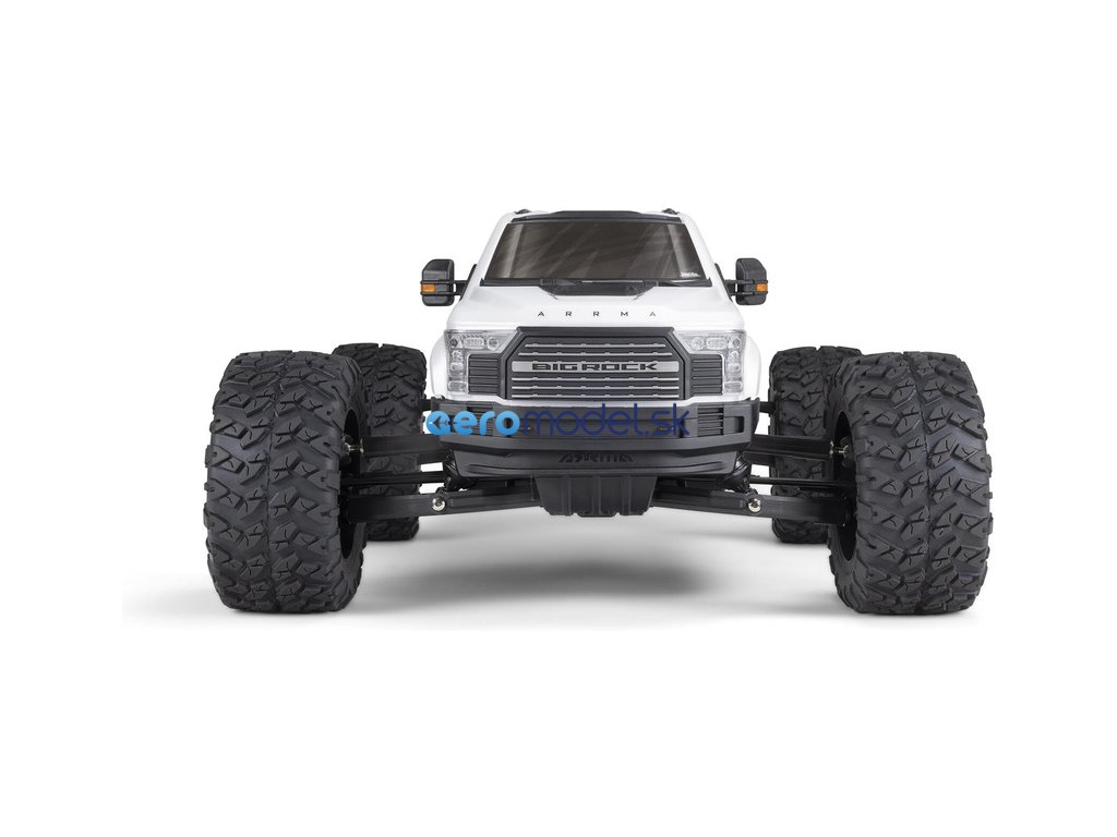 Monster truck ARRMA ® BIG ROCK ™ 6S BLX RTR v měřítku 1:7 je navržen pro rychlou drsnou jízdu bez kompromisů. Je vybaven šasi z černě eloxovaného hliníku se silnými bočními ochrannými kryty z kompozitního materiálu proti nečistotám, středovou výztuhou a šikmými vzpěrami pro maximální odolnost. Odolné hnací ústrojí zahrnuje celokovová ozubená kola diferenciálů a převodovky. V celém ústrojí jsou použity ocelové hnací hřídele.