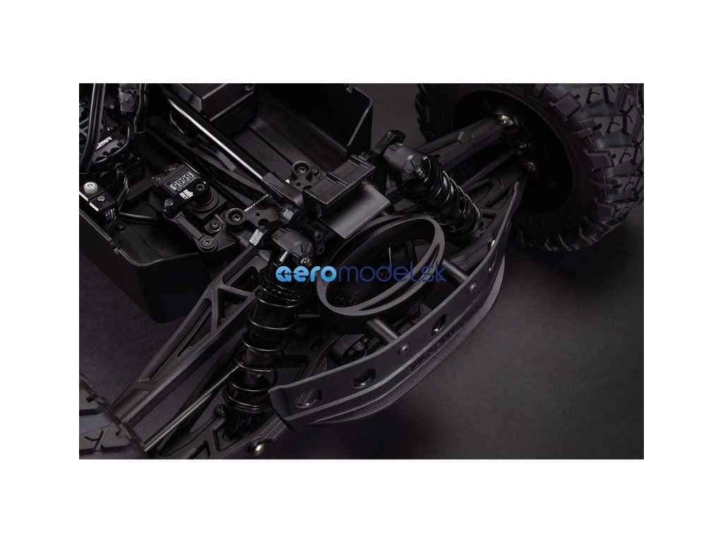 Pro vysokou odolnost modelu, která si poradí s každým terénem, je instalováno černě eloxovaného hliníkového šasi 6061-T6 a nezávislé odpružení s nastavitelnými hliníkovými tlumiči naplněnými olejem. Jednotlivé prvky, jako kovové hnací ústrojí, ocelové hřídele a nové digitální servo řízení Spektrum S665 s kovovými převody, spolupracují aby bylo využito plného potenciálu střídavého pohonu 6S.