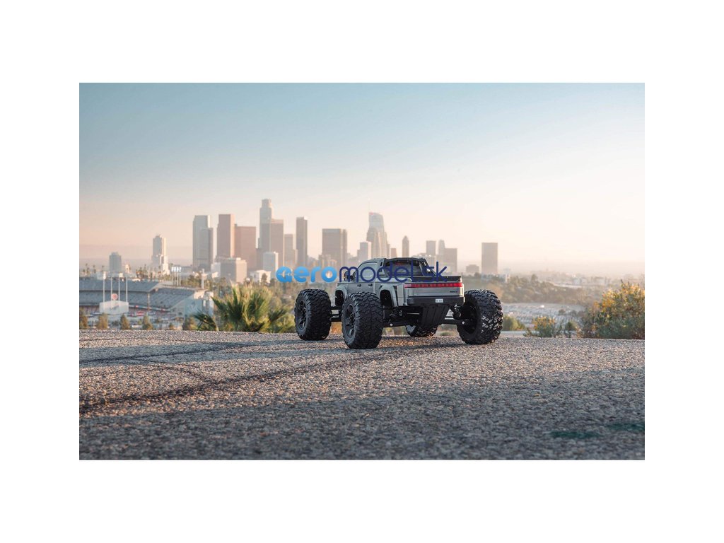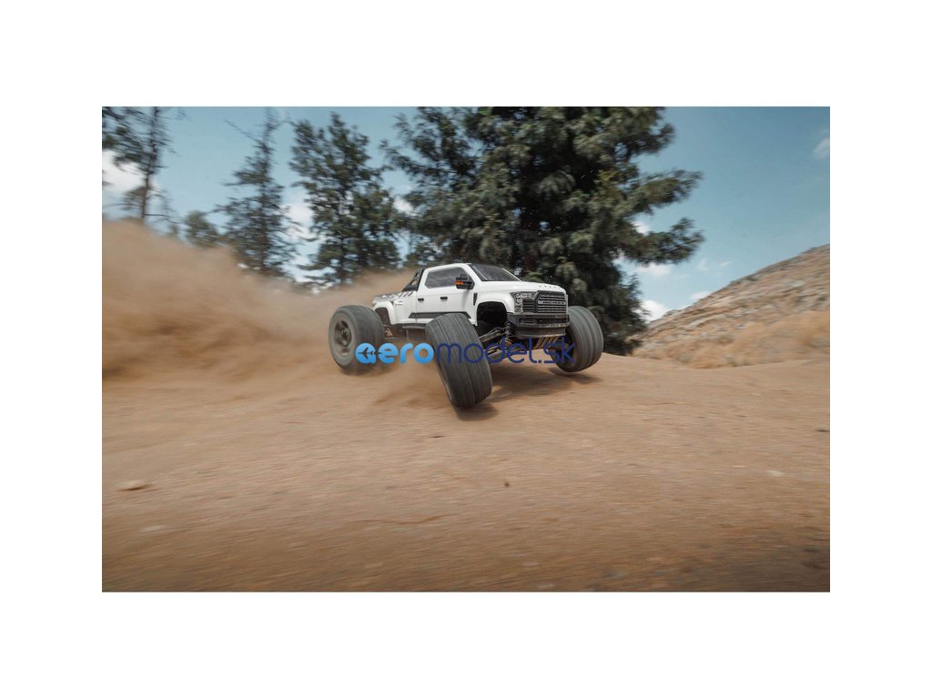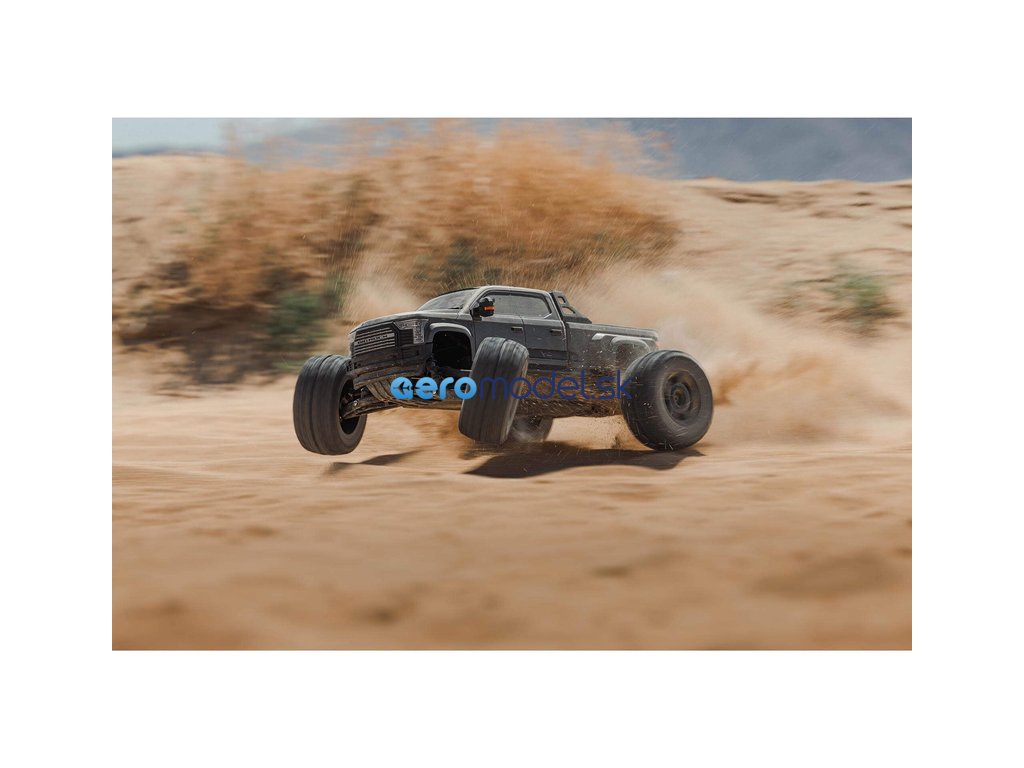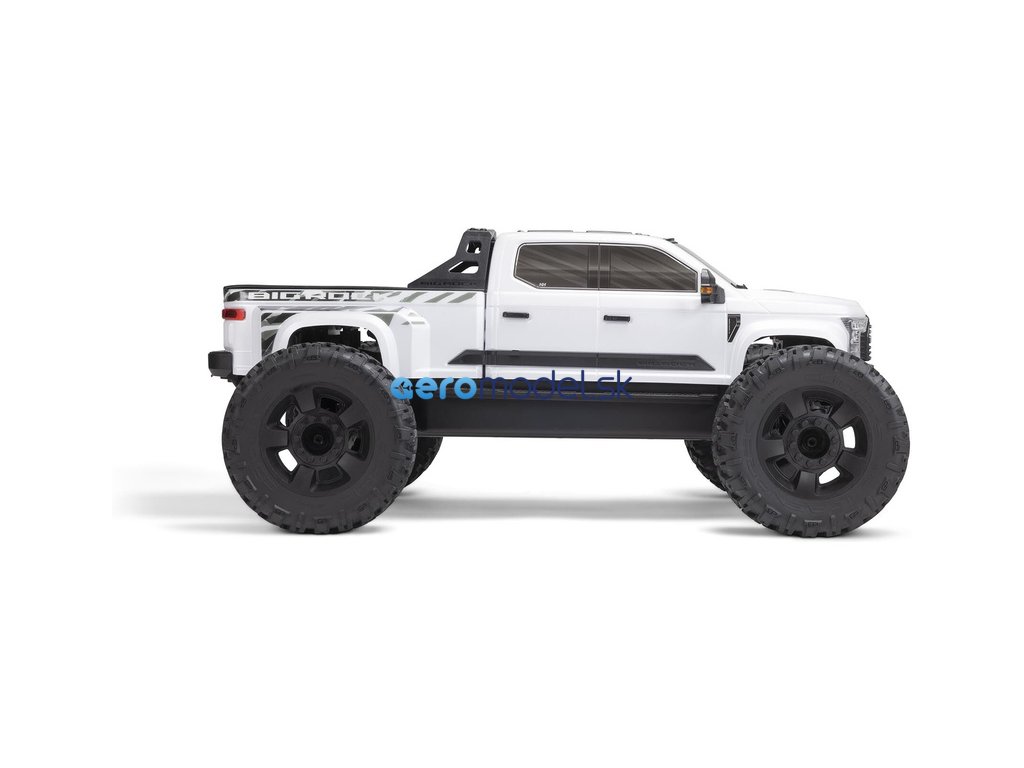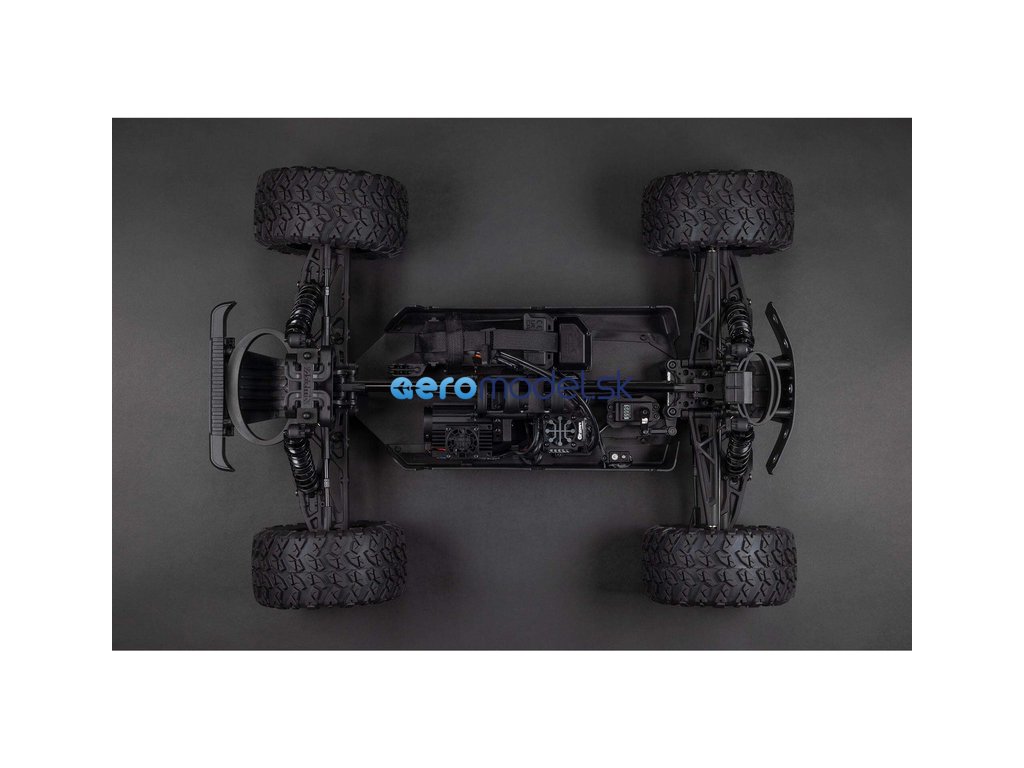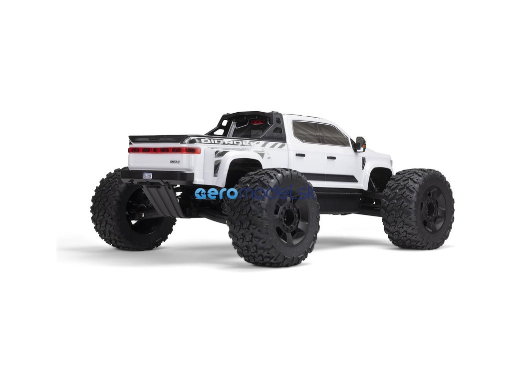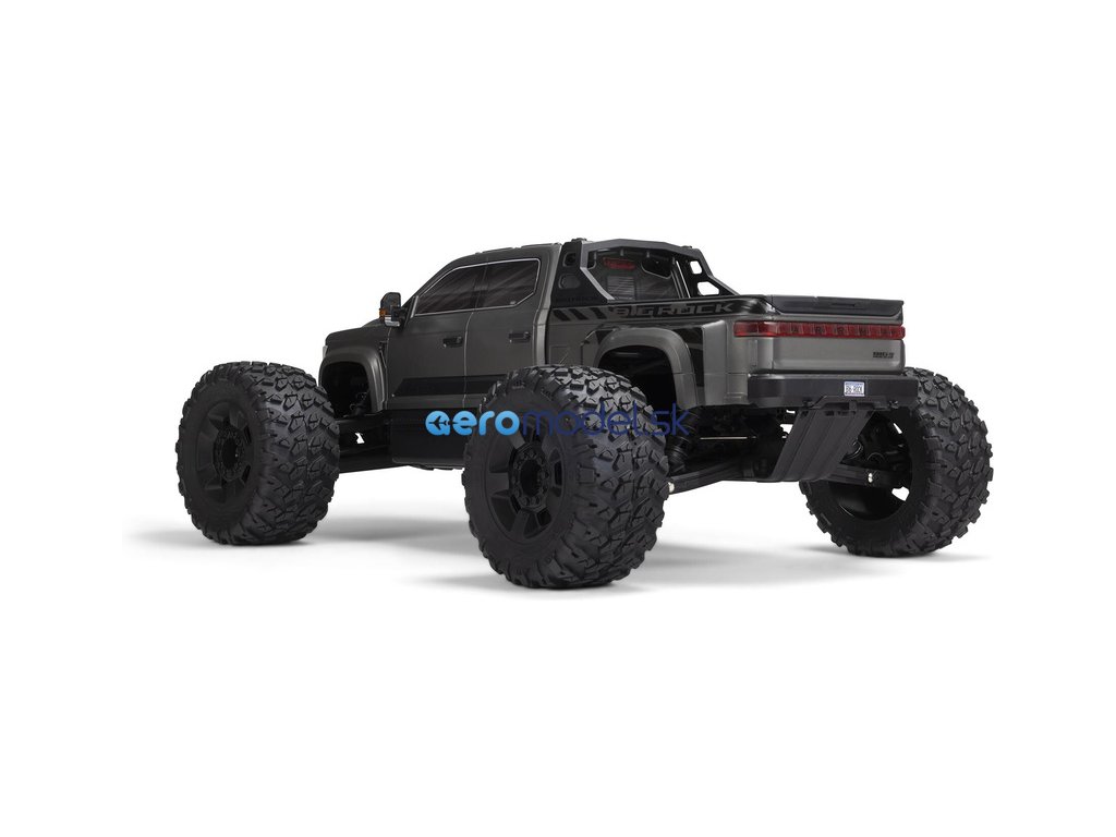 Monster truck ARRMA ® BIG ROCK ™ 6S BLX RTR v měřítku 1:7 je navržen pro rychlou drsnou jízdu bez kompromisů. Je vybaven šasi z černě eloxovaného hliníku se silnými bočními ochrannými kryty z kompozitního materiálu proti nečistotám, středovou výztuhou a šikmými vzpěrami pro maximální odolnost. Odolné hnací ústrojí zahrnuje celokovová ozubená kola diferenciálů a převodovky. V celém ústrojí jsou použity ocelové hnací hřídele.