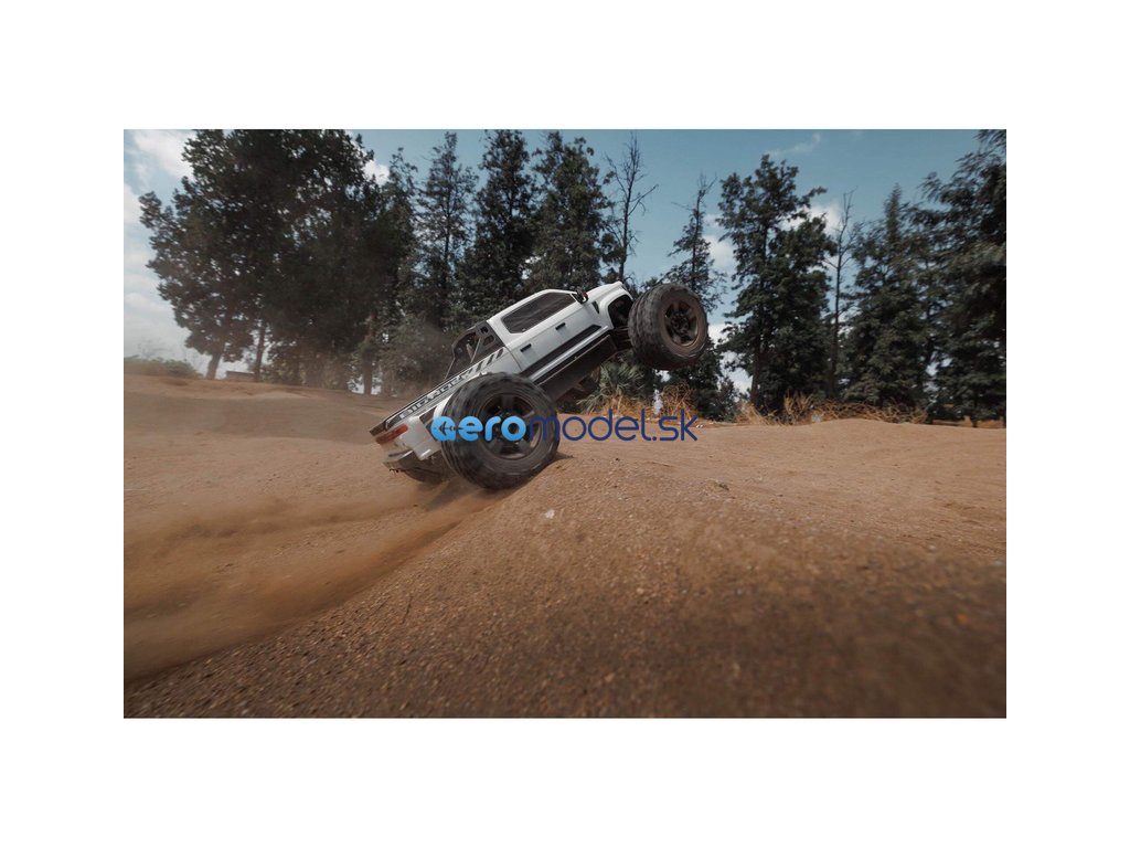 Karoserie auta na dálkové ovládání BIG ROCK 6S BLX RTR s dlouhou korbou je ztělesněním agresivního stylu nákladních pick-up vozidel. Systém předního držáku karoserie bez klipů zachovává čistý neuvěřitelně detailní vzhled v měřítku. Integrovaný rám přidává extra ochranu při převrácení modelu. Masivní, odvětrávané pneumatiky dBoots ® RAGNAROK ™ V2 s vysokým běhounem na pětipaprskových kolech doplňují výjimečný vzhled a přidávají vysokou přilnavost, kterou potřebujete pro rychlost a snadnou ovladatelnost na široké škále povrchů.