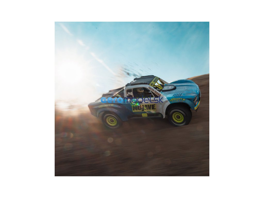 Ihned po vybalení Vás oslní tvar modelu a karoserie s figurkami řidiče a navigátora, profesionálně z výroby dokončená a ve výrazných barevných variantách, jež zachycuje nezaměnitelný vzhled skutečných pouštních závodních vozů MOJAVE DESERT TRUCK. Pneumatiky jsou namontovány na barevně sladěných kolech.