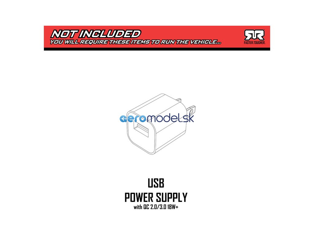 Vše potřebné k provozu modelu je obsahem balení. USB nabíječ lze napájet libovolným USB adaptérem. Pro prodloužení doby jízdy doporučujeme pořízení dalšího totožného akumulátoru s konektorem IC2, který je součástí balení. Pro zkrácení nabíjecí doby si můžete zakoupit výkonnější nabíječ.
