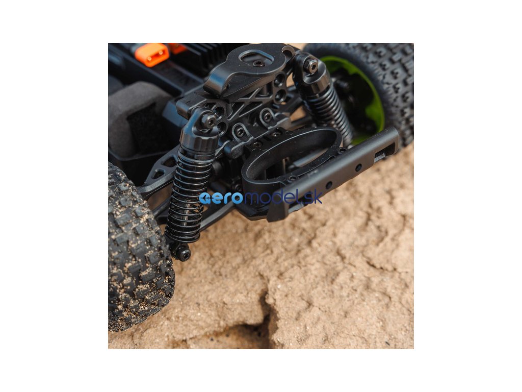 Pro brutální jízdu přes překážky, skoky i velké nerovnosti, je model vybaven kvalitními, olejem plněnými tlumiči. Pokud si budete chtít model vybavit profi příslušenstvím, můžete použít tuningové příslušenství a namontovat na model hliníkové tlumiče.