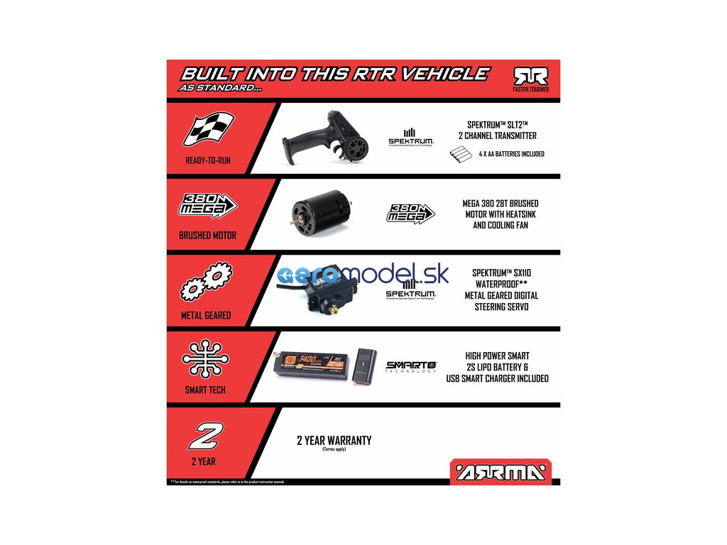Pro spolehlivé řízení je nainstalováno servo řízení Spektrum™ SX110 s kovovými převody, které zajistí vysokou odolnost i v případě nárazu.