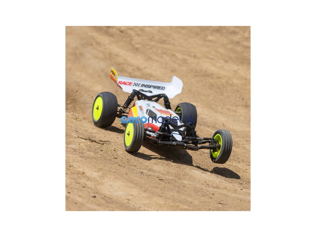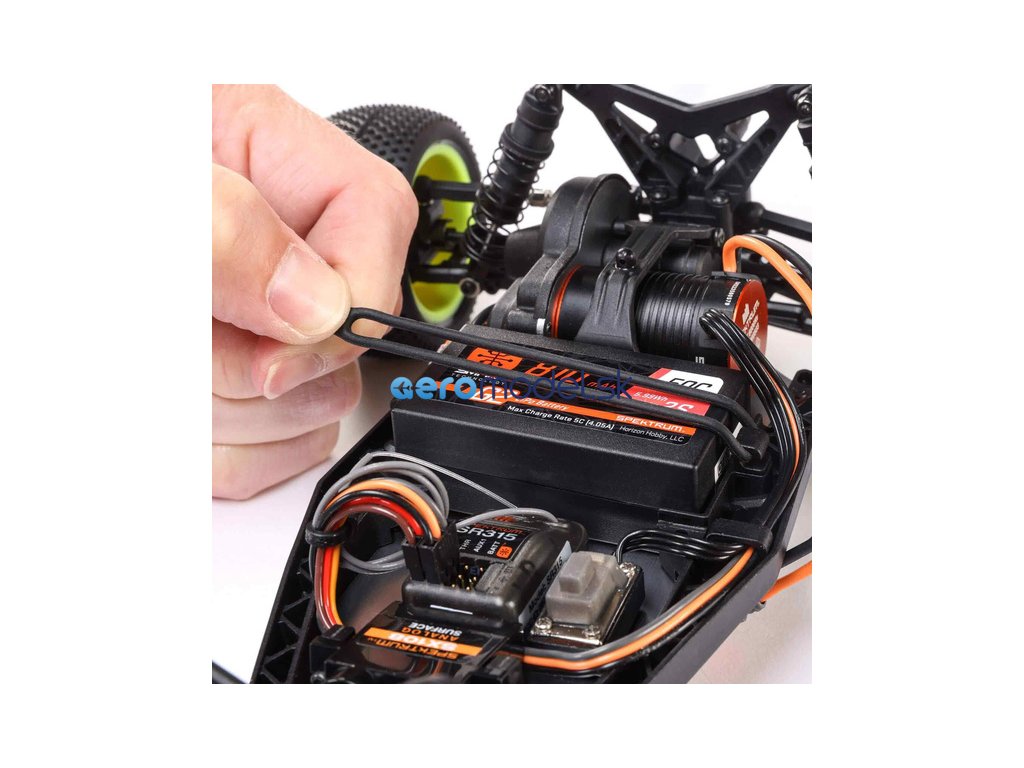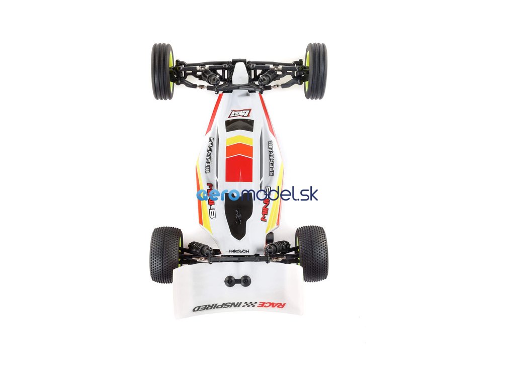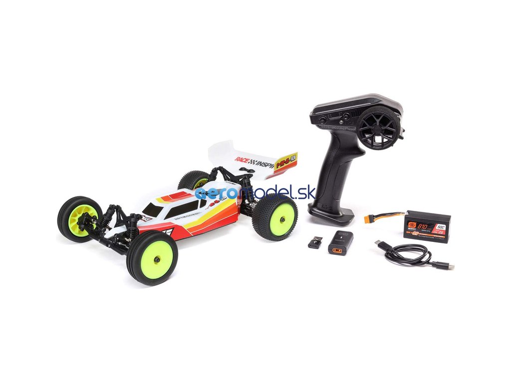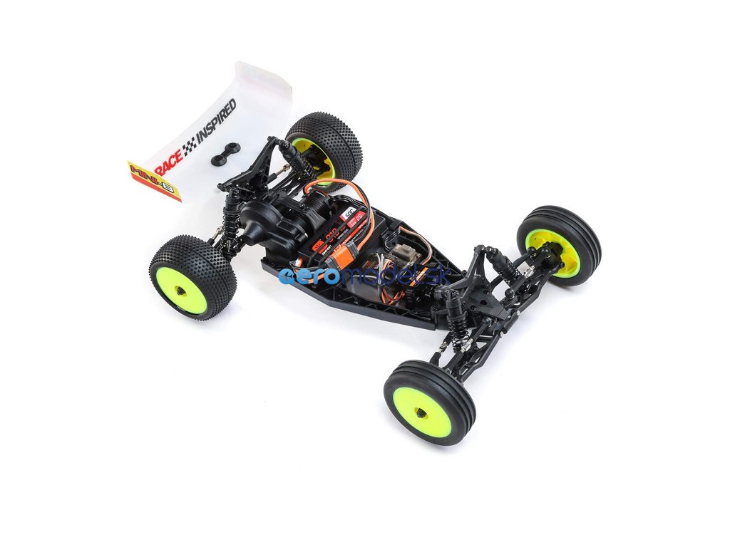 Populární RC model auta Buggy Losi Mini-B v měřítku 1:16, je vybaven výkonným střídavým pohonem pro rychlou dravou jízdu. Má RTR vybavení, vše potřebné k jízdě je obsaženo v balení - vysílač Spektrum SLT 2.4GHz, přijímač SR315, LiPol baterii Smart G2 810mAh 2S, servo řízení s kovovými převody, nabíječ Smart LiPo USB-C, i baterie do vysílače .
