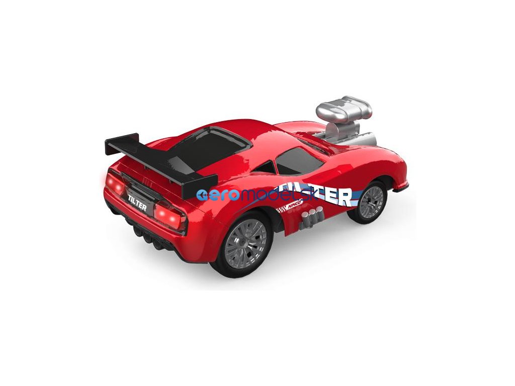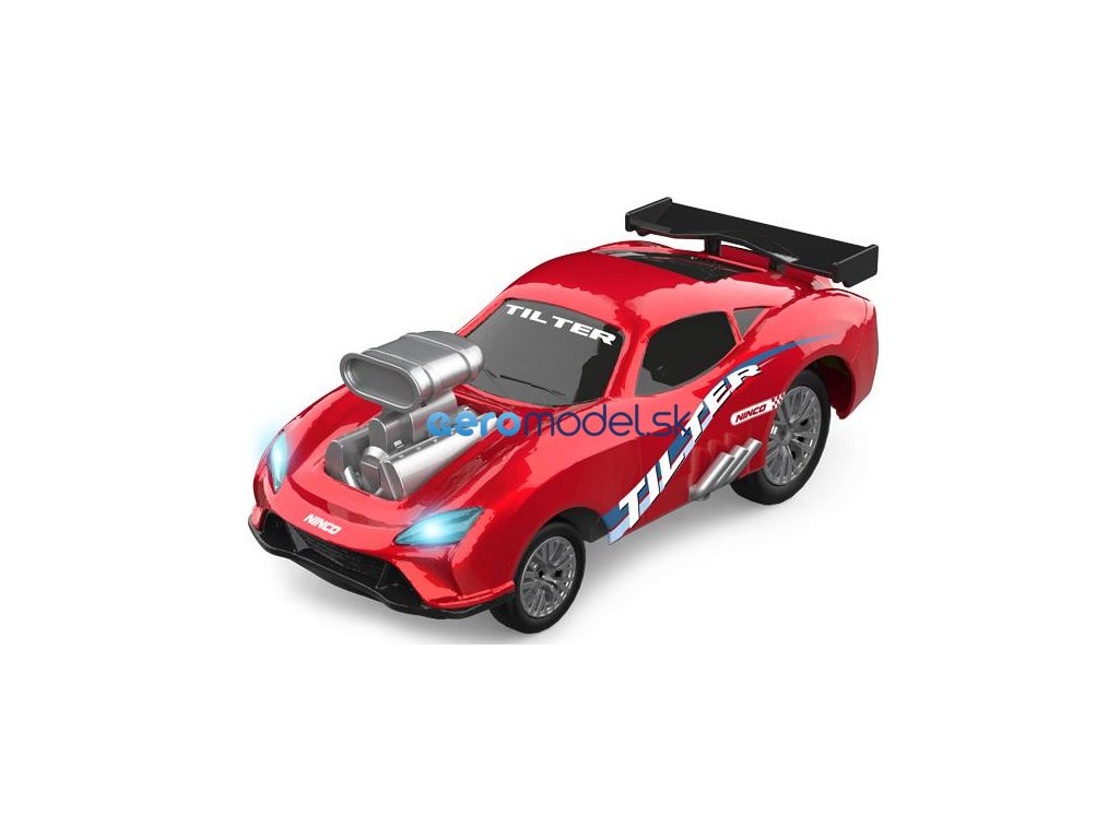 Auto na dálkové ovládání NINCORACERS Tilter s karoserií, která se při zatáčení naklání a dodává tím závodní efekt rychlé jízdy. Model obsahuje přední bílá a zadní červená LED světla a designovou karoserii s maketou motoru. Auta má pohon na dvě menší kola v zadní části uprostřed, která zároveň slouží pro zatáčení modelu. Rychlost auta je až 15 km/h. Obsažený volantový vysílač 2.4GHz zajistí ovládání bez výpadků. Vše důležité pro provoz je obsahem balení, včetně akumulátoru Li-ion 7,4V 500mAh a USB nabíječe. Stačí doplnit 2x AA baterie do vysílače.