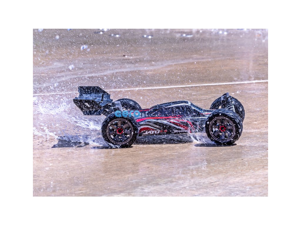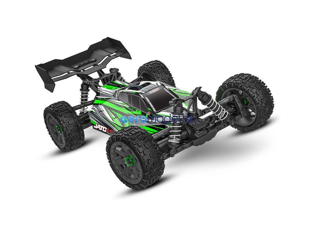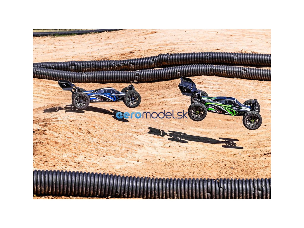 RC model buggy Traxxas Jato v měřítku 1:8 přináší rychlost, odolnost, náhon 4x4 a hlavně zábavnou jízdu. Obsahuje podvozek s nízkým těžištěm, přesnou geometrii zavěšení a optimální rozložení hmotnosti pro hbitost a výbornou dynamiku řízení. Výsledkem je, že Jato 4x4 se ovládá s přesností závodní buginy a poskytuje všechny uživatelské výhody a jednoduchost vlastní modelům Traxxas. Model pohání střídavý motor s regulátorem BL-2S a jezdí až 48 km/h! Obsahuje bezsponkovou karoserii pro snadnou výměnu akumulátoru a komponenty pro vysokou odolnost - Extreme Heavy Duty. Osvědčená RC souprava TQ 2.4 GHz doplňuje tento špičkový RC model.