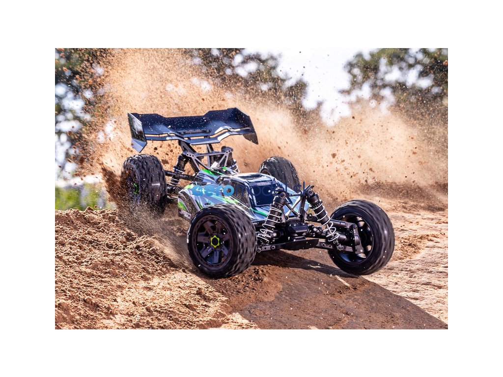 Regulátor se třemi jízdními režimy zaručí zábavu dospělým i dětem díky možnosti omezení výkonu na 50%. Přes zvýšenou rychlost a akceleraci, oproti stejnosměrnému pohonu, je zachován cenově dostupný provoz na 2S LiPo akumulátory. Ovládání zajišťuje vysílač TQ 2.4 GHz s precizní mechanikou řízení a dlouhým dosahem. K dispozici je samozřejmě široká paleta tuningových dílů, včetně kompletních náhradních.