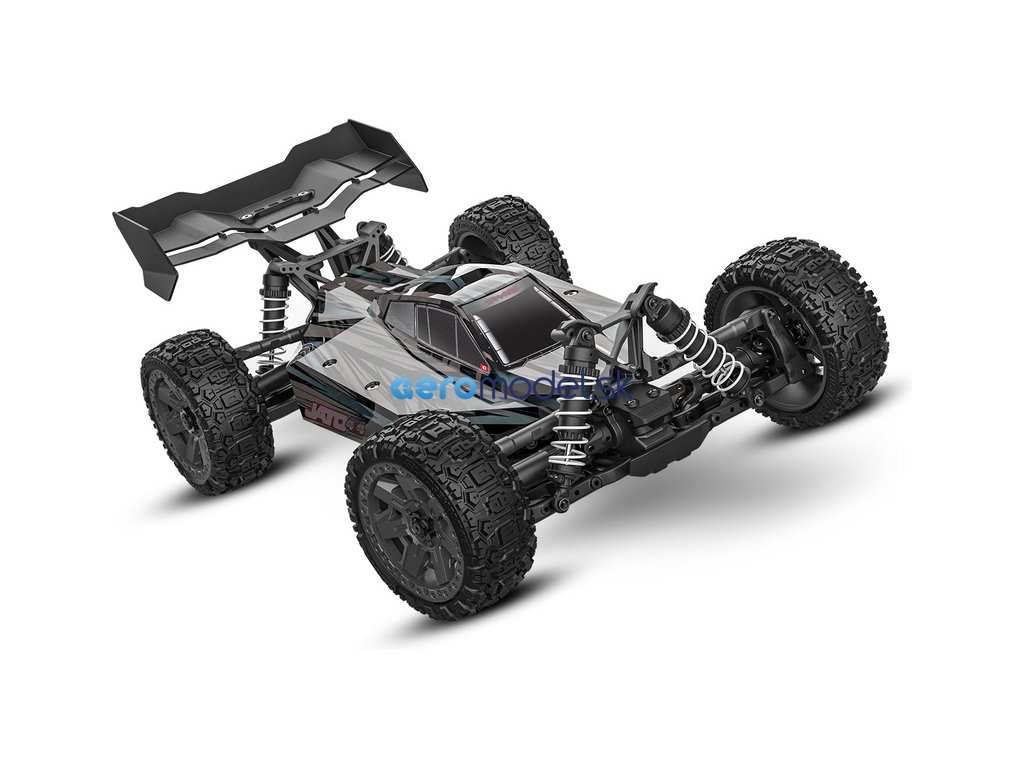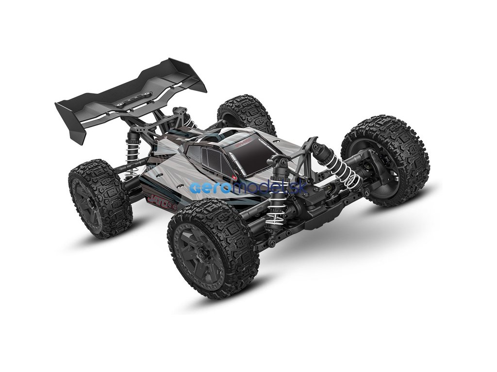 Těžiště modelu je soustředěno nízko, až pod úroveň poloos pro dokonalé rozložení hmotnosti a s tím spojenou ovladatelnost. Extra dlouhé tlumiče GTR vpředu a vzadu maximalizují trakci tím, že udržují nové pneumatiky Sledgehammer ® buggy Jato 4X4 v neustálém kontaktu s povrchem.