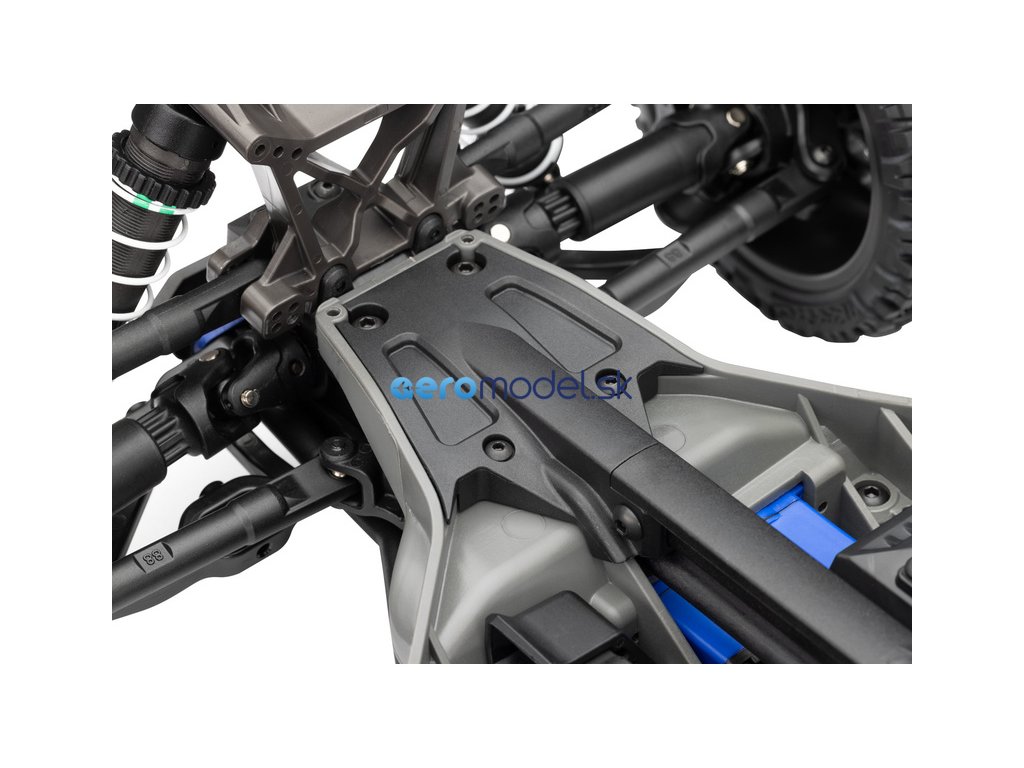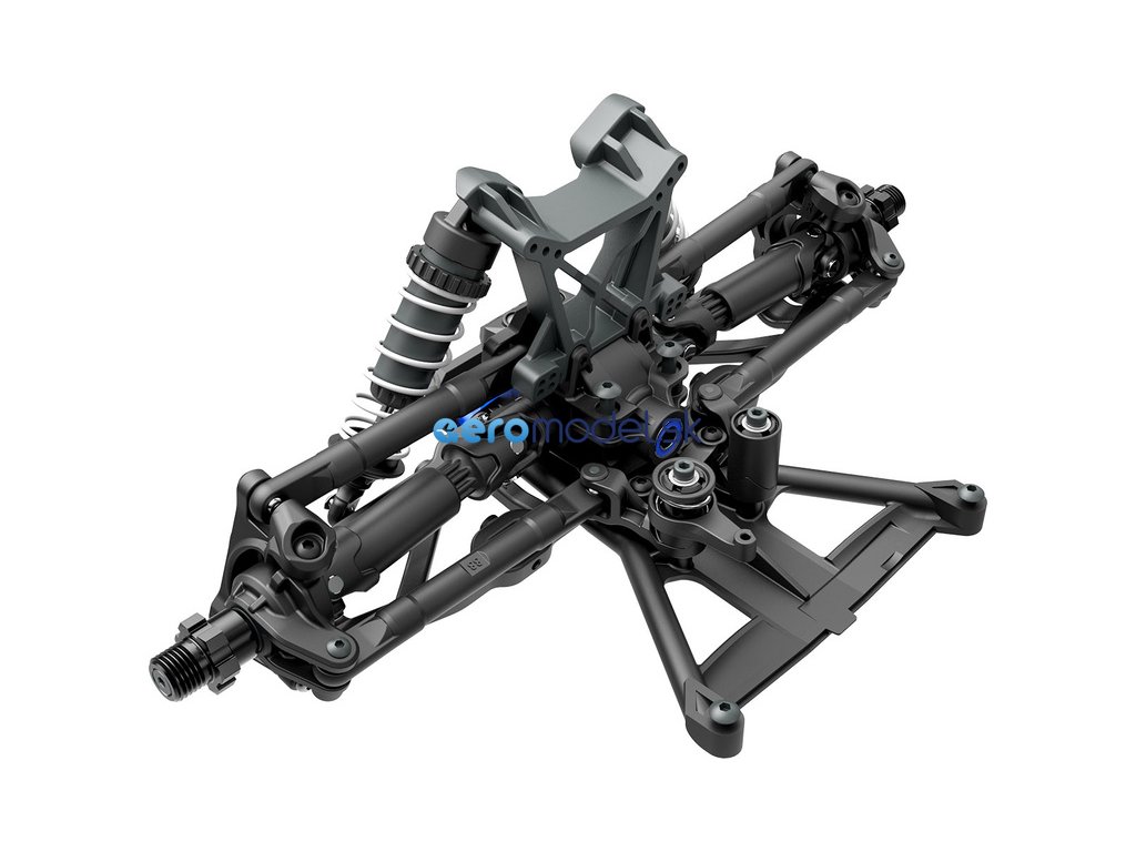 Nová platforma využívá modulární konstrukci pro snadný servis, podvozek je rovný a spodní kluzné desky umožňují sklouznutí modelu po břiše. Pevnost prostorového šasi posiluje středová výztuha T-Bar. Výborné pohlcení nárazu zajišťují tlumiče GTR, které oproti standardním obsahují větší množství oleje a pohodlné nastavení předpětí pružin. Výkon motoru je přenášen přes třecí spojku, středovou hřídel k přednímu a zadnímu diferenciálu s kovovými převody a přes robustní teleskopické poloosy až ke kolům. Pro snížení naklánění modelu při jízdě na trati můžete instalovat volitelné příčné stabilizátory (prodávají se samostatně).
