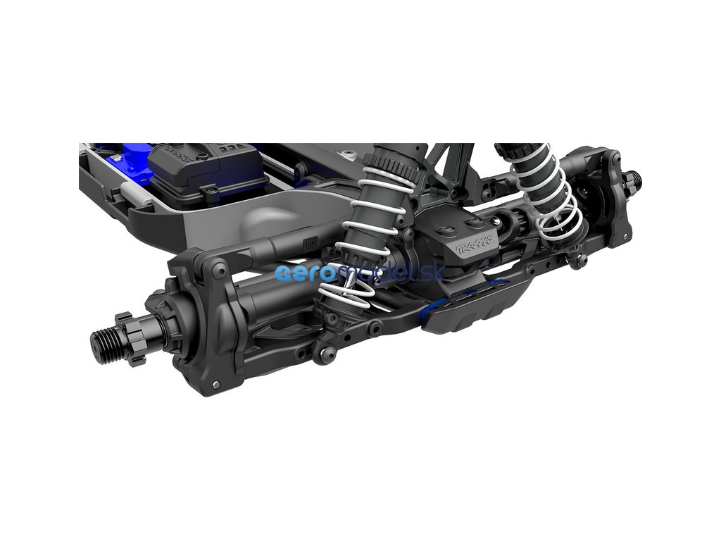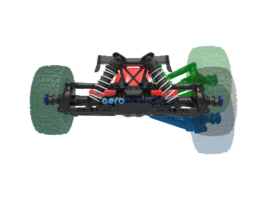 Továrně instalované komponenty zavěšení a prvků pohonu pro vysokou odolnost - Extreme Heavy Duty, jsou vyrobeny z těch nejodolnějších materiálů, které společnost Traxxas používá. Pevnost dále zvyšuje středová výztuha a věže tlumičů s dvojitým uchycením proti střihu. Robustní poloosy mají vylepšené uchycení kardanového kloubu.