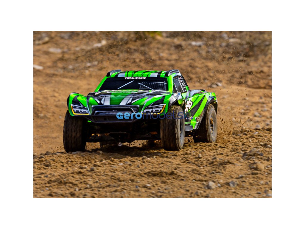 Výkonný RC model auta Traxxas Maxx Slash zvětšený na měřítko 1:8, postavený na robustním šasi Maxx s výkonným střídavým pohonem VXL- 6S. Model poskytuje brutální akceleraci, odolnost a rychlost až 112 km/h. Obsahuje vylepšené pohonné ústrojí, bezsponkovou karoserii a RC soupravu TQi.