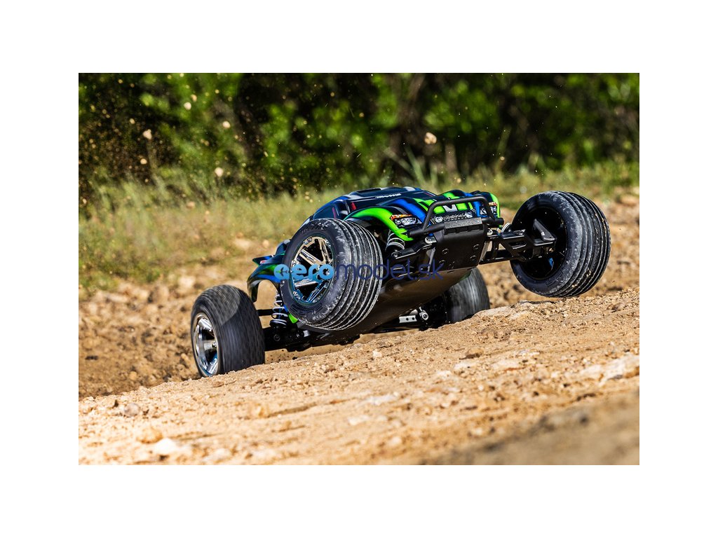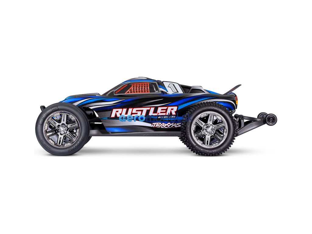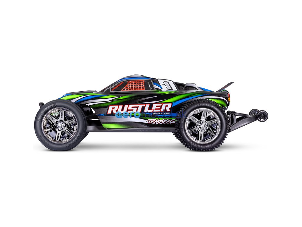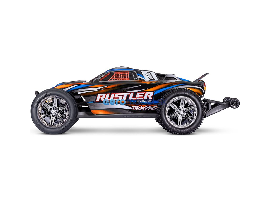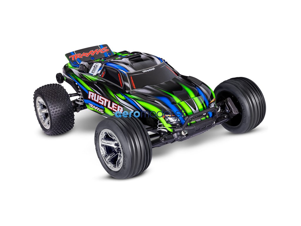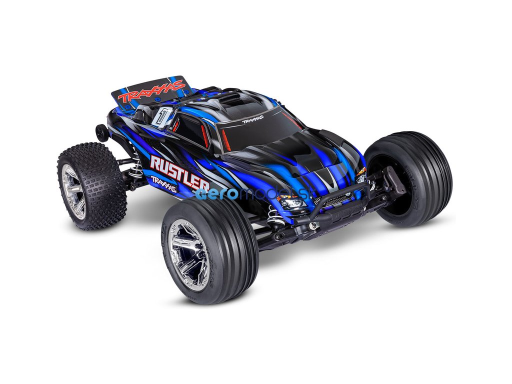 RC model auta Rustler 1:10 typu Truggy je poháněn střídavým motorem a regulátorem BL-2S pro napájení 2S LiPo akumulátory. Střídavý pohonný systém přináší brutálnější akceleraci, dlouhou životnost a rychlost modelu až 64 km/h. Navíc je model továrně vybaven sadou Extreme Heavy Duty pro vysokou odolnost a exkluzivním bez-sponkovým systémem upínání karoserie.