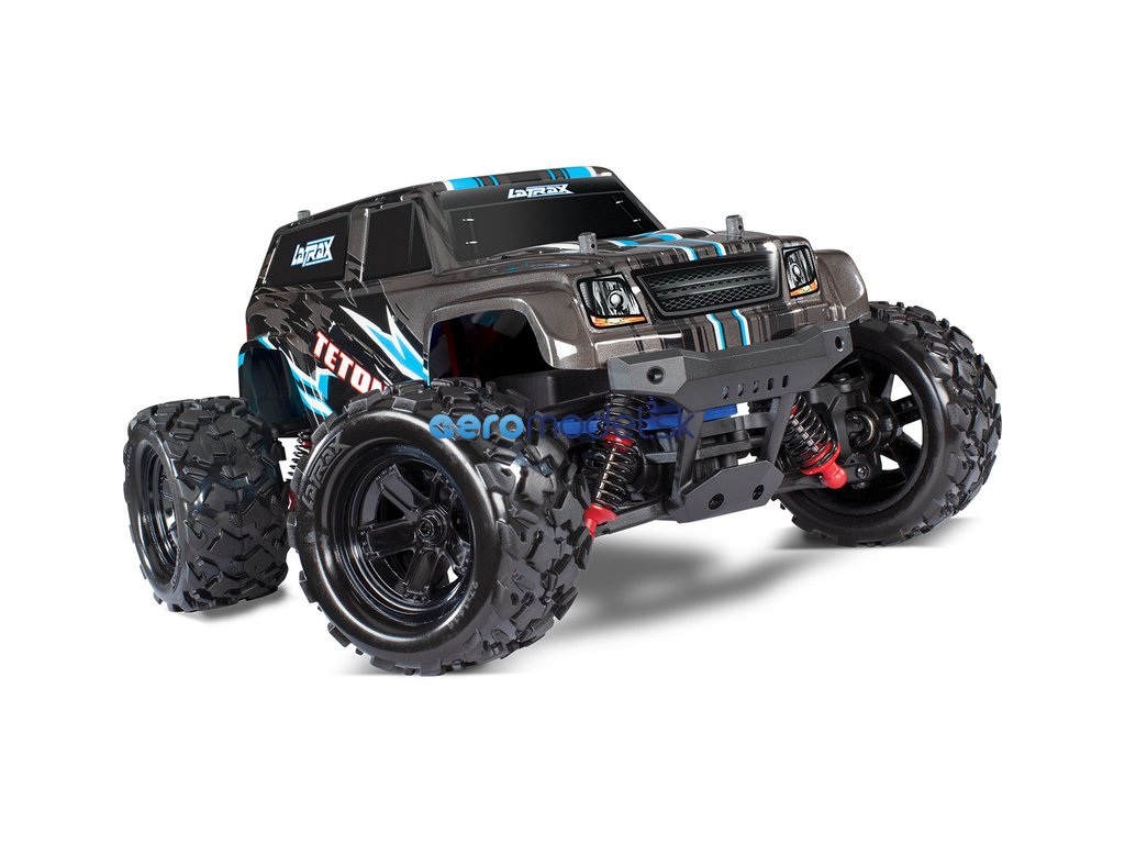 Velmi oblíbený malý a výkonný RC model auta Traxxas Teton. Cenově dostupný off-road monster truck v měřítku 1:18 od značky Traxxas, který nabízí plnohodnotnou zábavu jako u větších modelů. RC model auta Traxxas Teton obsahuje náhon 4WD, přední a zadní diferenciál, nezávislé zavěšení a olejové tlumiče. Vysílač s precizní mechanikou v pásmu 2.4 GHz, přijímač s bezpečnostní funkcí Failsafe, regulátor otáček se 3 jízdními režimy a proporcionální servo řízení. Rychlost až 30 km/h.
