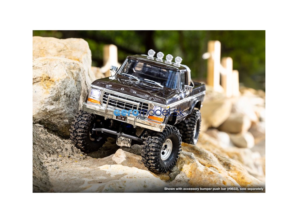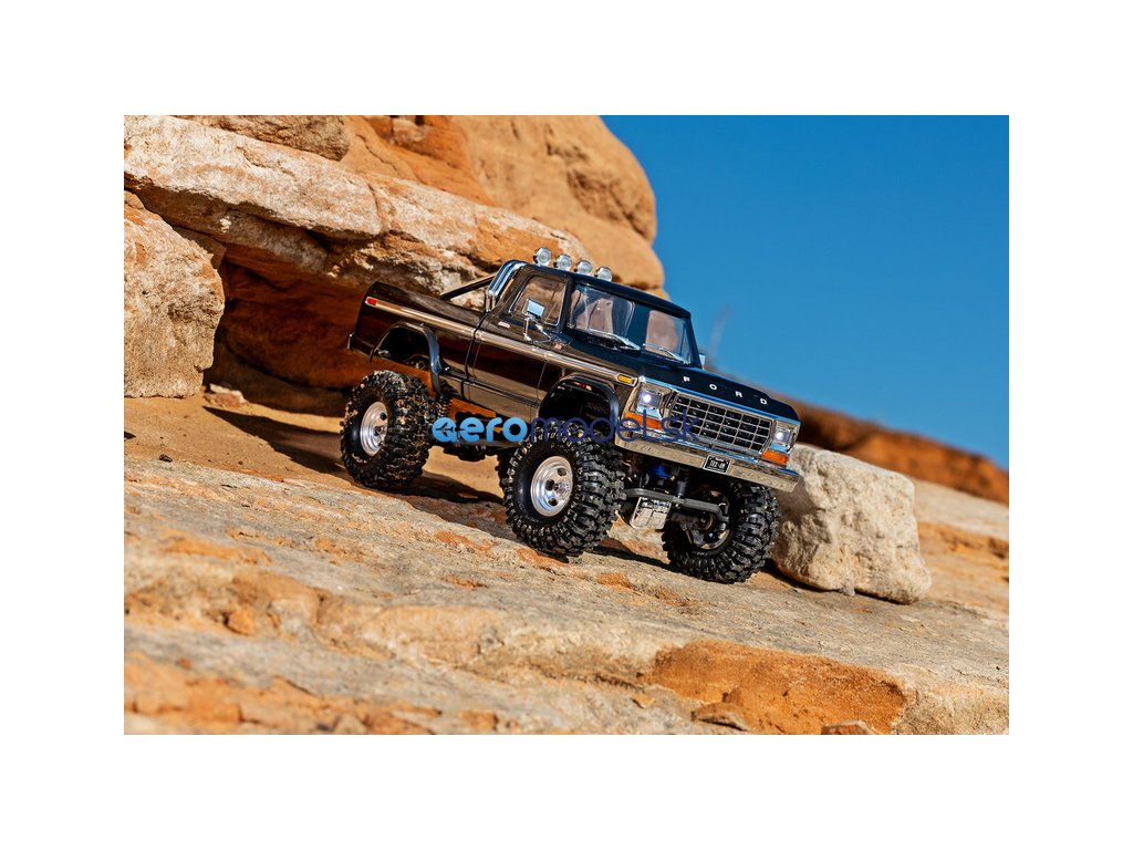 Balení obsahuje RC model auta Traxxas TRX-4M Ford F-150 1979 High Trail Edition s nainstalovanými komponenty: stejnosměrný motorTitan 180 87T, řídící jednotka ECM-2.5, servo řízení 2065T. Vysílač Traxxas TQ, akumulátor LiPo 7.4V 750 mAh, USB nabíječ. Příslušenství: klíče imbus (1.5, 2 mm), křížový klíč, podložky pod pružiny, prodloužený držák s tažným zařízením. Návod CZ a manuál EN, DE, FR, SP.