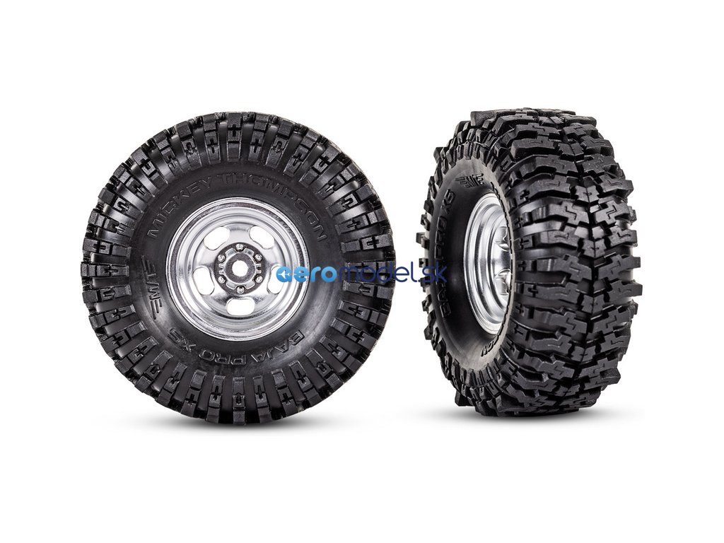 Pneumatiky Mickey Thompson® Baja Pro™ XS s průměrem 2.4" jsou o 4.9 mm větší než standardní pneumatiky na TRX-4M. Spolu s polomatně chromovanými koly s pěti otvory, tvoří agresivní vzhled s vysokým postojem.