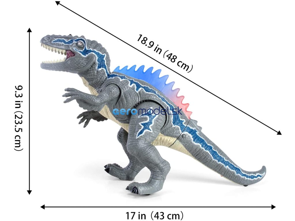 Tento RC dinosaurus meria 11,69 cm - dĺžka x 43 cm - výška.