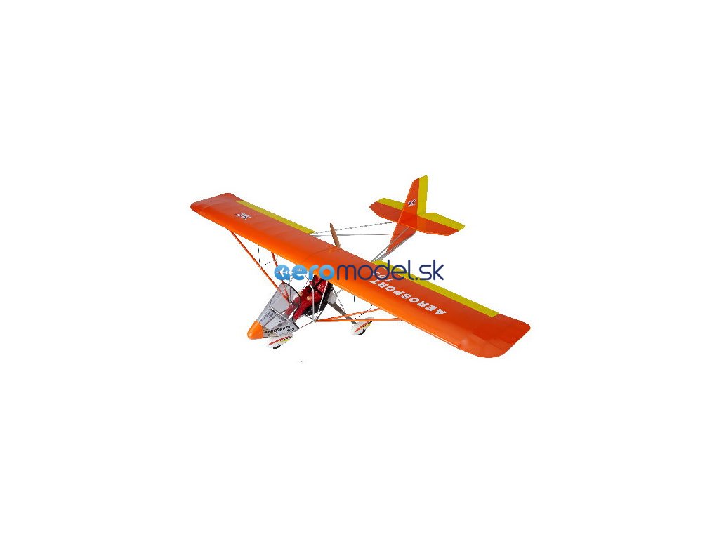 Máte rádi zajímavé a netradiční konstrukce? Právě pro vás je určen RC model ultralightu Aerosport 103. Hotové dřevěné díly potažené fólií a kovové součásti trupu čekají na sestavení. Rozpětí 2390mm, pohon benzínovým motorem 20 – 30 ccm nebo odpovídajícím elektromotorem.
