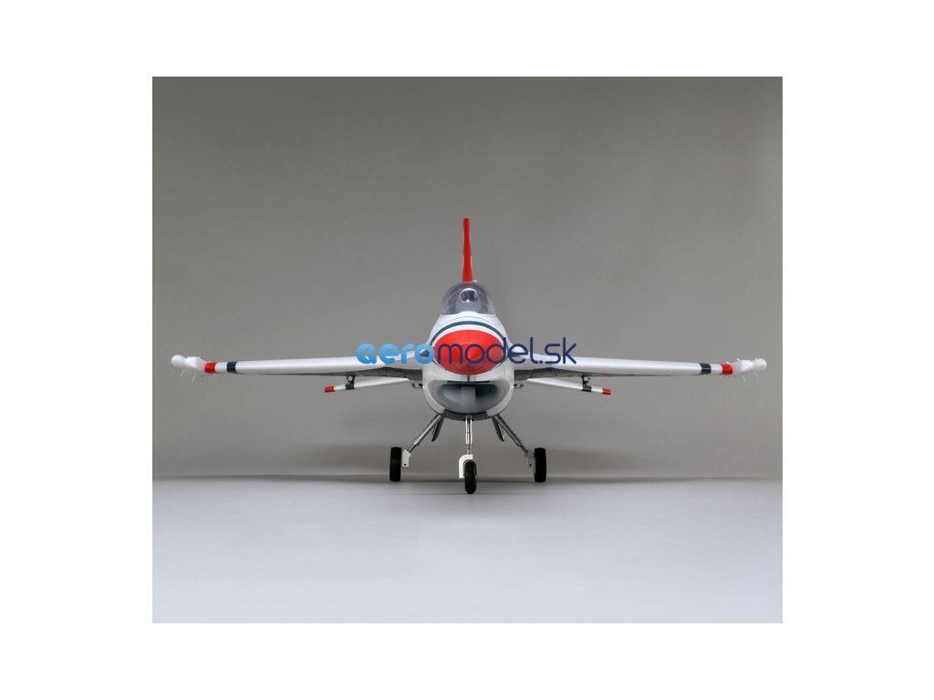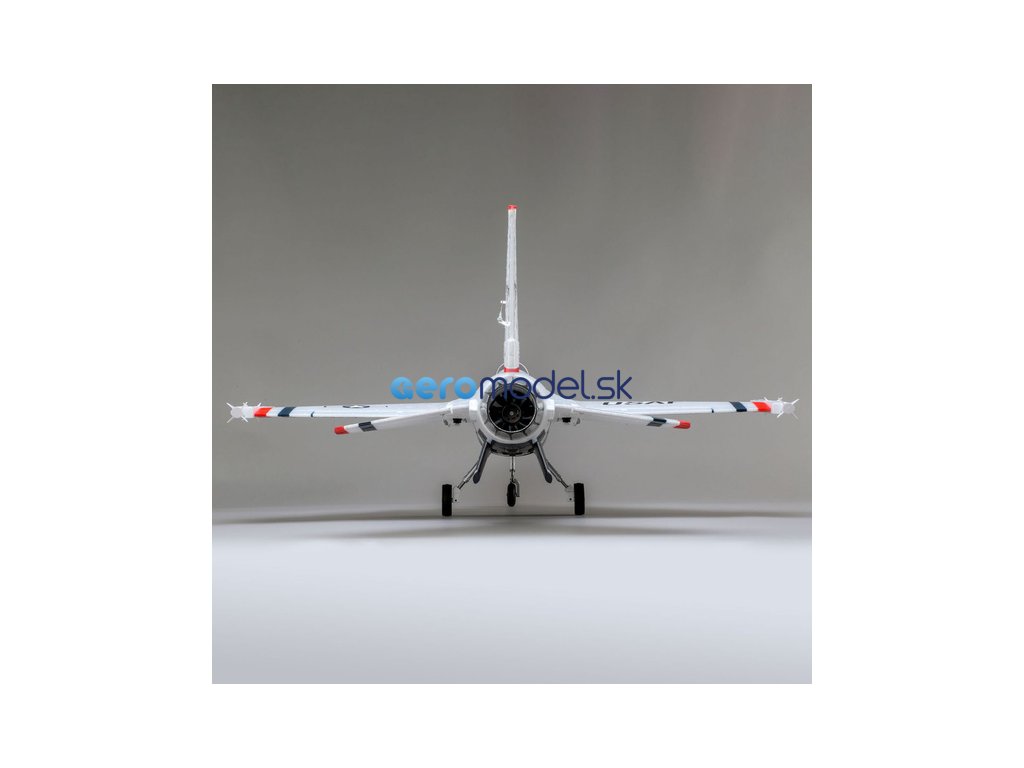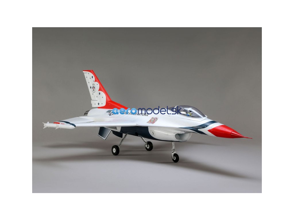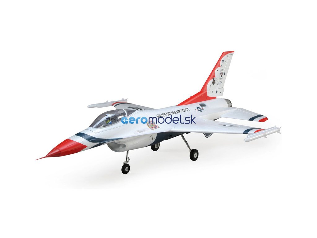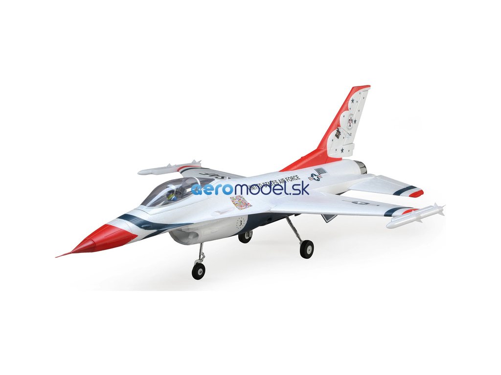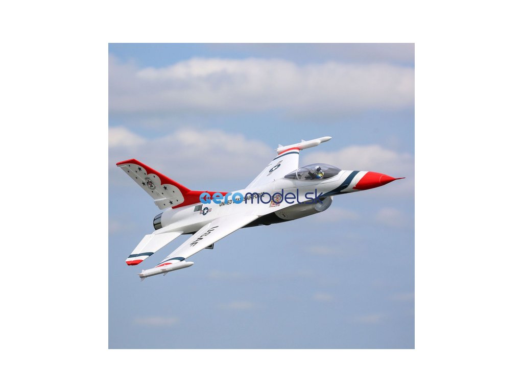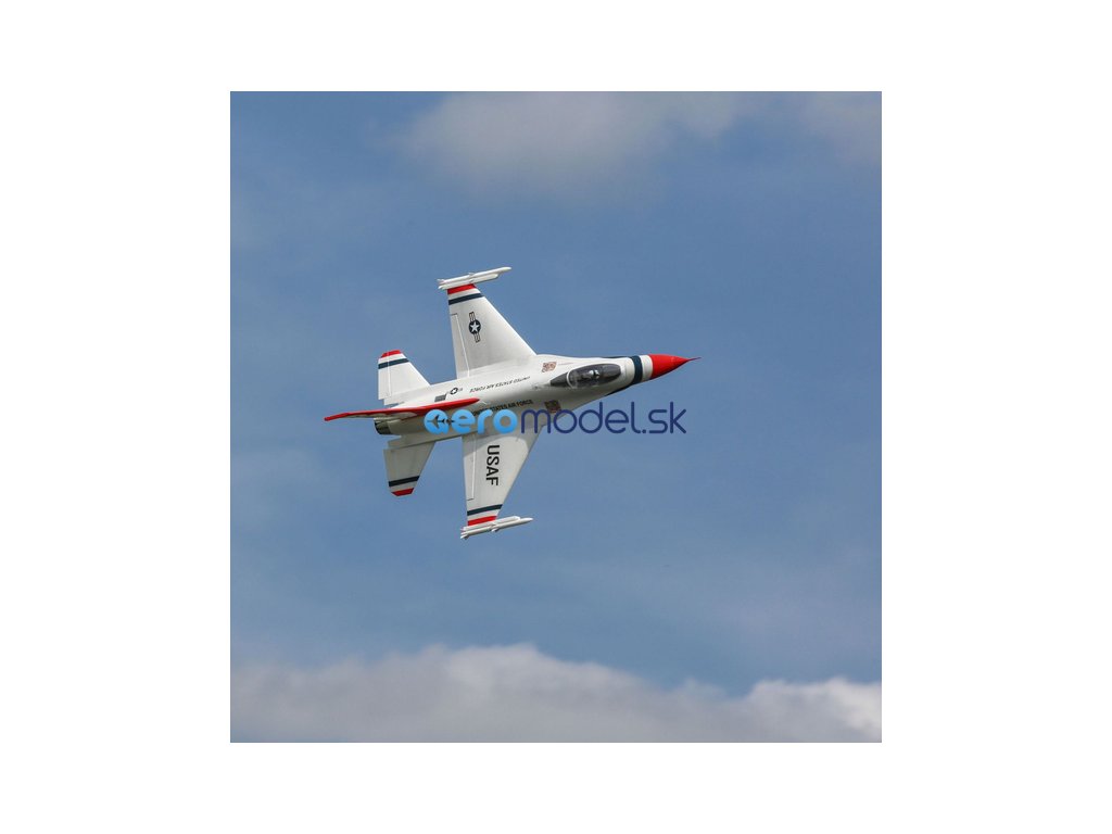 Stíhací proudový letoun General Dynamics (dnes Lockheed Martin) F-16 je jedním z nejuznávanějších a nejúspěšnějších současných jednomotorových stíhačů na světě. O jeho kvalitách vypovídá zařazení v mnoha armádách a také vyrobených přes 4500 kusů. Jeho úžasný výkon a schopnosti jsou důvodem, proč se jej světově proslulý americký letecký tým Thunderbirds rozhodl předvádět na leteckých dnech po celém světě. Model od E-flite® F-16 Thunderbirds je replikou, která nabízí vysoké výkony a současně je snadno ovladatelný. Model je vybaven exkluzivní technologií AS3X® a SAFE® Select.