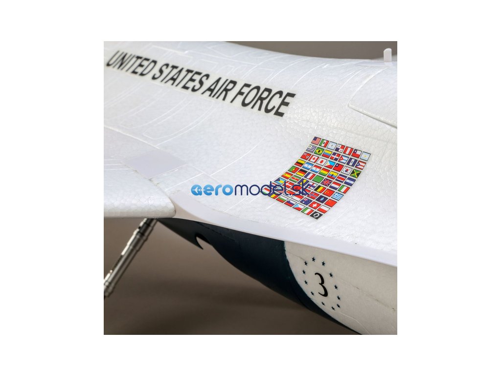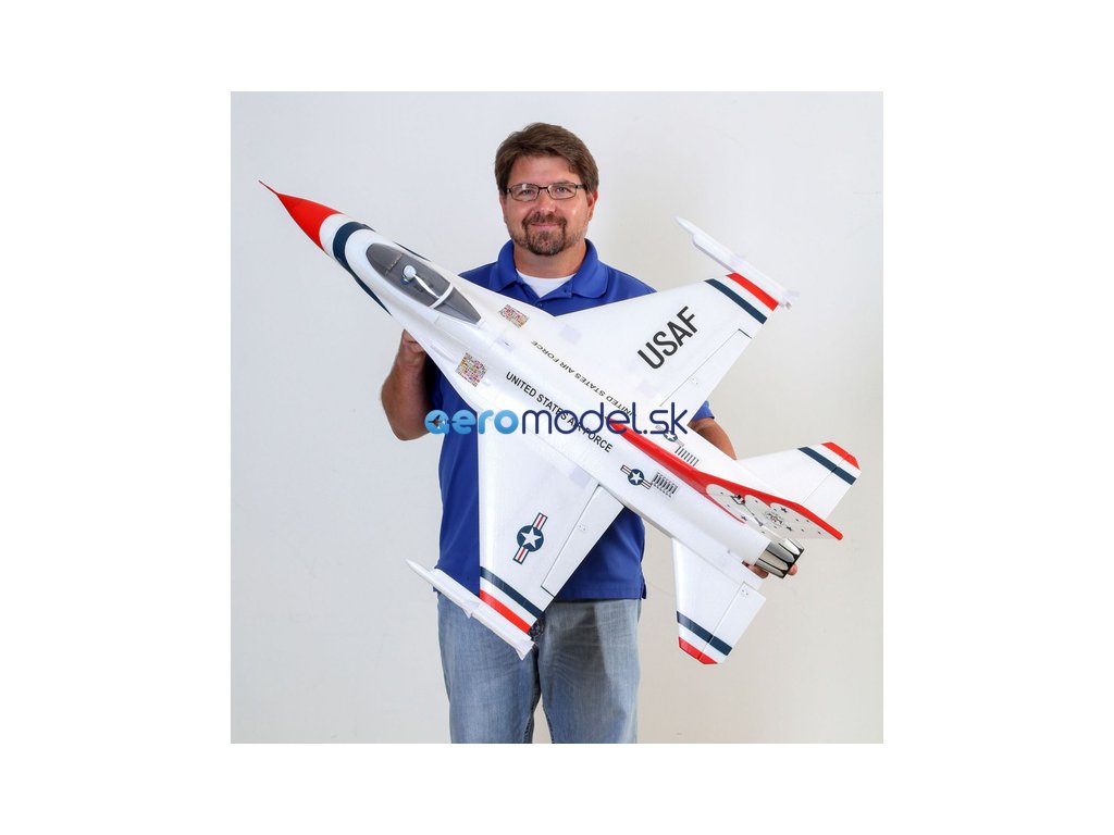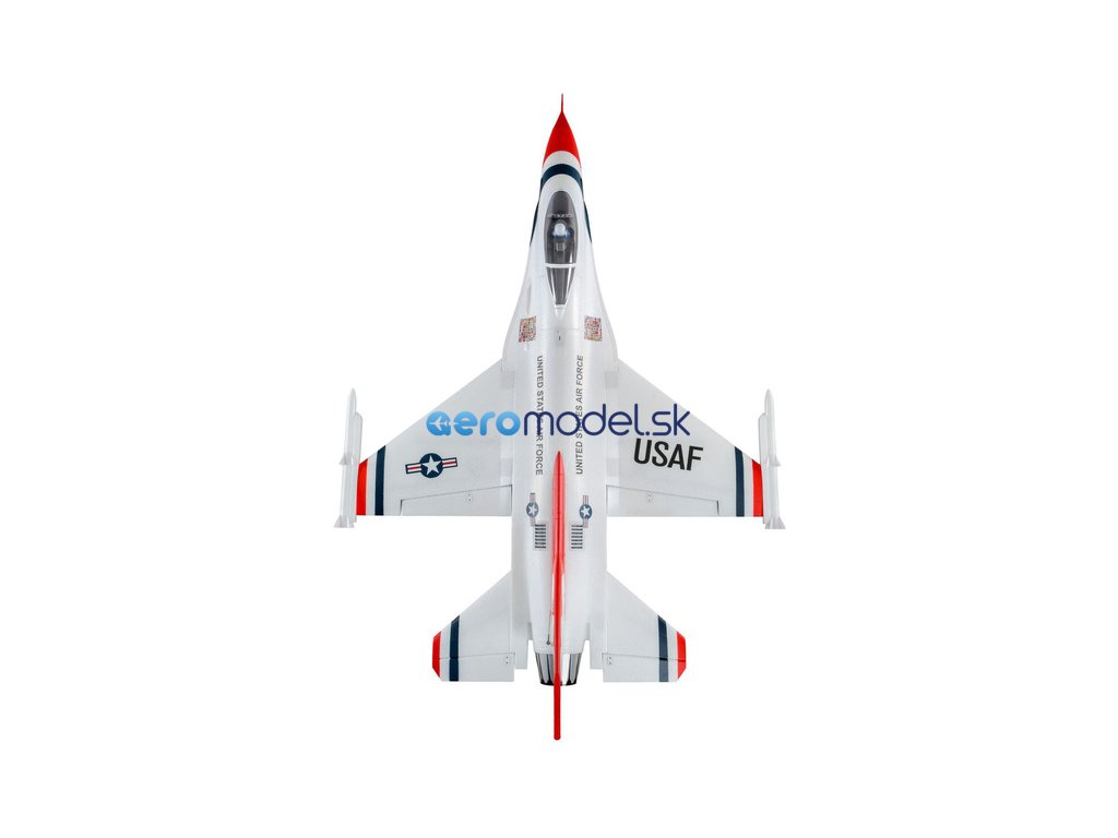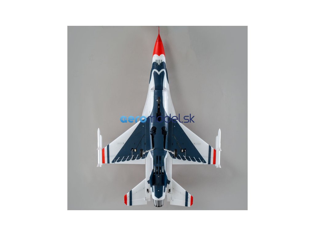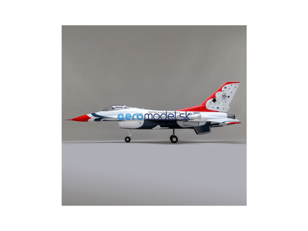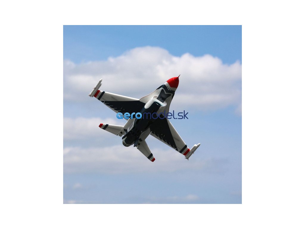 F-16 Thunderbirds EDF má téměř neomezený vertikální výkon a akrobatické schopnosti, které vyniknou i díky velmi elegantnímu designu. Rozpětí rychlostí modelu je obrovské, od minimální na vztlakových klapkách až po maximum při plném plynu. Aby bylo možné těchto přednosti využít, je potřeba použít kvalitní LiPol baterie, které snáší vysokou proudovou zátěž. Baterie nejsou součástí balení.