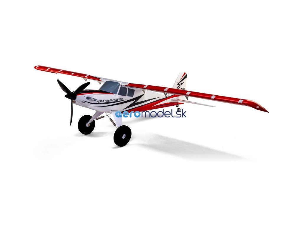 Turbo Timber Evolution je sportovní víceúčelový RC model letadla o rozpětí 1.5 m s nainstalovaným pohonem a elektronikou. Pohání jej střídavý motor 10BL 800Kv s regulátorem Spektrum Avian 70 A, kompatibilní s LiPol 3S-4S a díky této kombinaci je model schopen vzlétnout a přistát doslova na metru. Velká kola umožňují vzlet a přistání na trávě. Balení jako bonus obsahuje sadu plováků pro vzlet a přistání na vodní hladině! Nainstalované osvětlení.