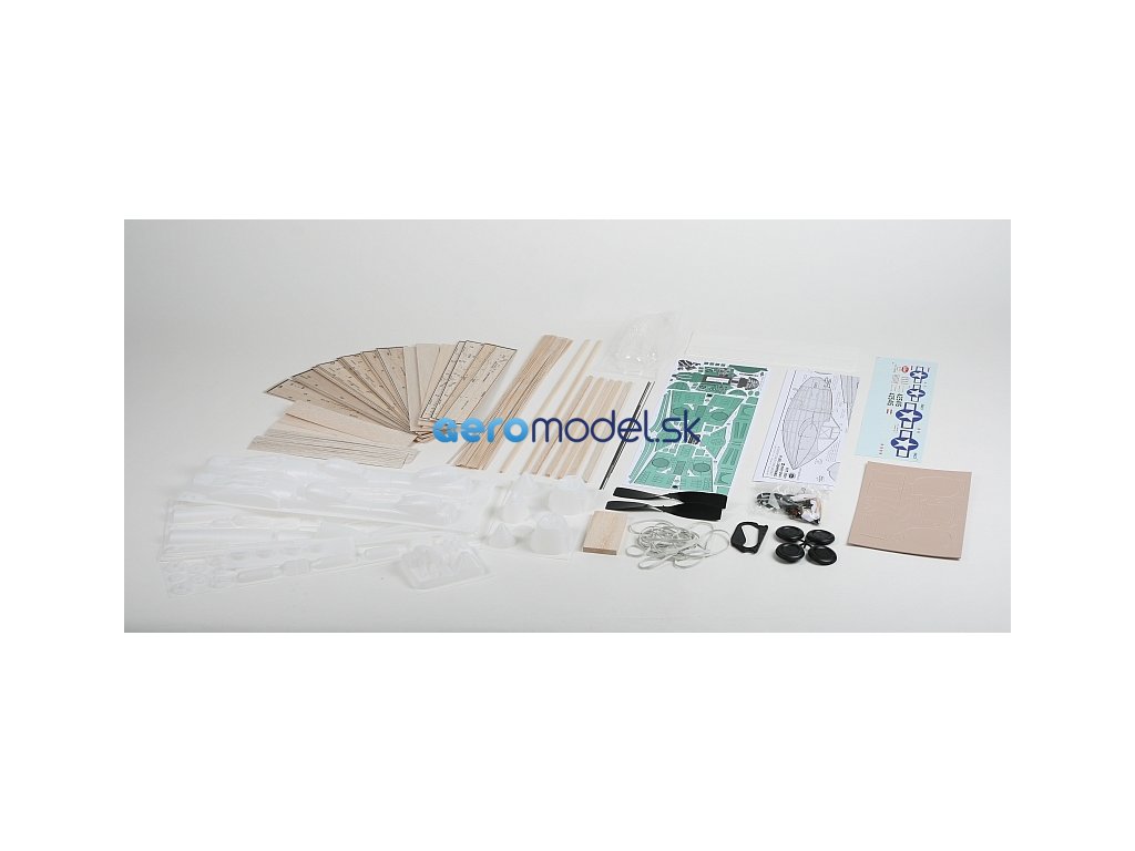 Stavebnice obsahuje: balsové předseknuté díly, balsové nosníky, předseknuté díly z plastikové překližky, vakuově lisované maketové díly (kryt motoru, motor...), čirý acetátový výlisek krytu kabiny, ocelovou strunu na podvozek a další drobné díly, plastová kola, potahový papír, rukojeť a vahadlo pro upoutaný model, velký aršík mokrých obtisků, stavební plán.
