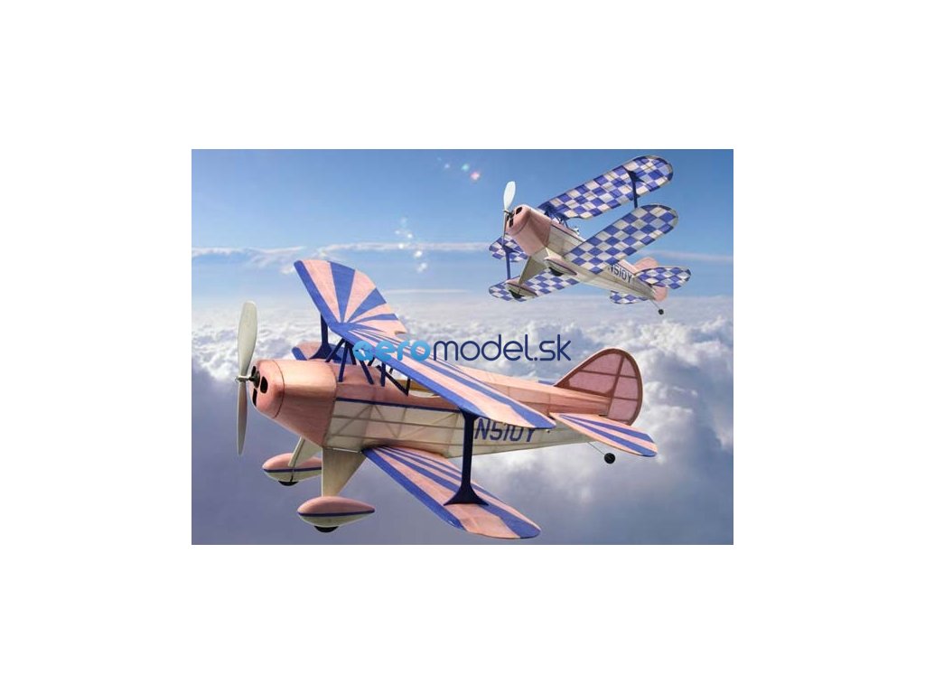 Stavebnice volně létající polomakety amerického akrobatického letadla určená pro pohon gumovým svazkem. Model je jednoduché klasické celobalsové konstrukce v rozsypu s laserem vyřezávanými dřevěnými díly a plastovými díly zhotovenými vstřikovým lisováním. Trup je konstruován běžnou minimaketářskou technologií - nejprve z balsových lišt sestavíte bočnice, které spojíte polopřepážkami a příčkami. Výsledné oblé tvary získáte po nalepení většího počtu tenkých podélníků. Křídla jsou klasické konstrukce z nosníků a žeber, ocasní plochy z balsových lišt a laserem vyřezávaných dílů.