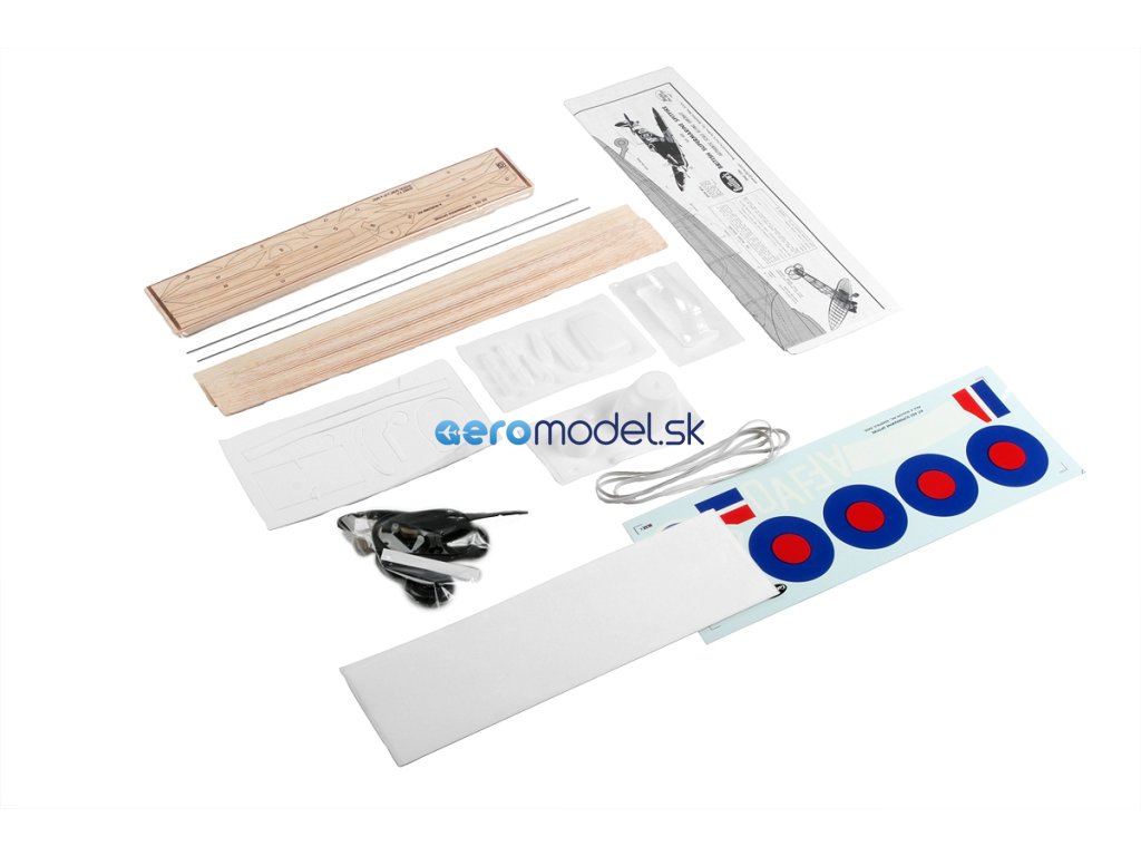 Stavebnice obsahuje: balsové laserem vyřezávané díly, balsové nosníky, vakuově lisované maketové díly (kryt motoru, kabiny...), plastovou vrtuli s hřídelí a hlavicí, gumový svazek (guma 5x1mm), plastová kola, ocelovou strunu na podvozek a další drobné díly, plastová kola, potahový papír, aršík mokrých obtisků, stavební plán.