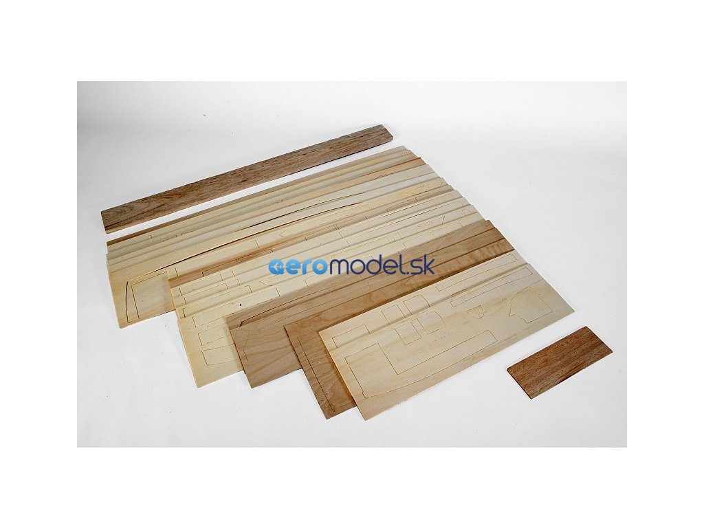 Stavebnice obsahuje: předseknuté překližkové díly, předseknuté a laserem vyřezávané díly z mahagonové dýhy, mahagonové plaňky, balsové plaňky, odlévané kovové díly a další maketové příslušenství, stavební plán obsahující třípohledový výkres lodi a perspektivní nákresy jednotlivých kroků stavby, dva aršíky samolepek, návod ke stavbě.
