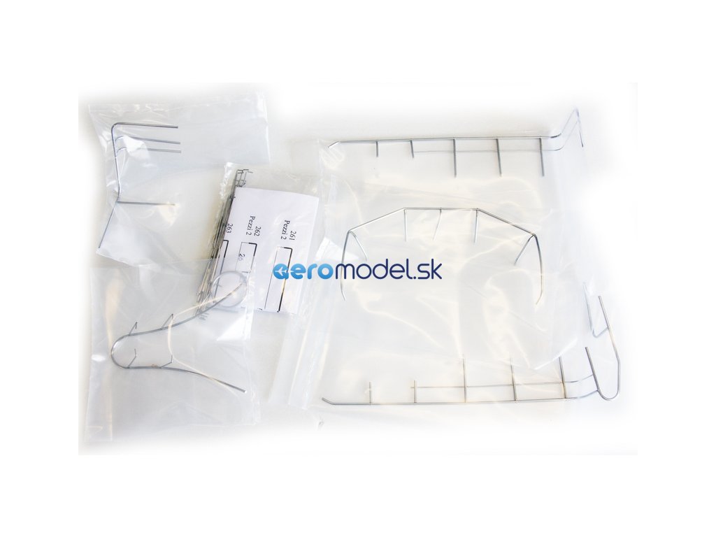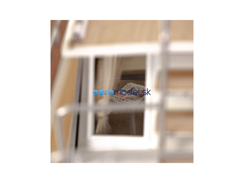 Po otevření víka krabice naleznete dřevěné díly modelu z překližky, sadu lišt, drobné součásti uzavřené v sáčcích, sadu výkresů a manuál.