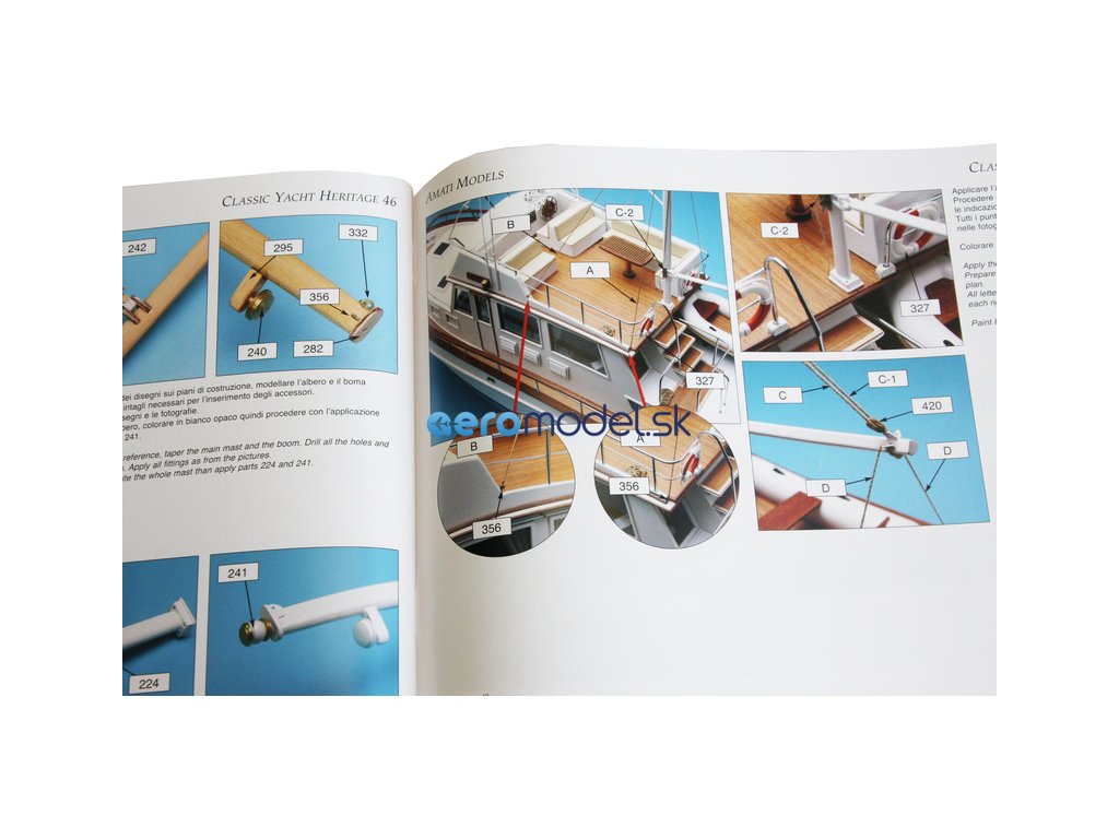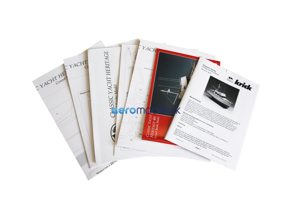 Set obsahuje kompletní sadu výkresové dokumentace modelu v měřítku 1:1 s obrázky jednotlivých detailů. Na výkrese jsou v měřítku nakresleny montážní sestavy, jejich kompletace a to včetně stěžňů a ráhen a způsob vázání lanoví. Vícejazyčný postup stavby rámcově upravuje logické sestavení jednotlivých komponentů.