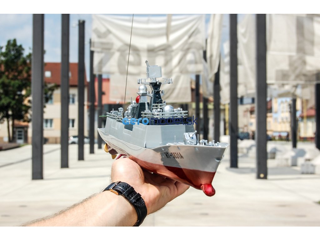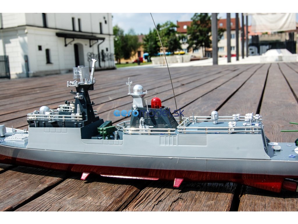 Loď je vyrobená z odolných materiálov s dôrazom na tie najmenšie detaily a podrobnosti ako sú veže s kanónmi, radarom.