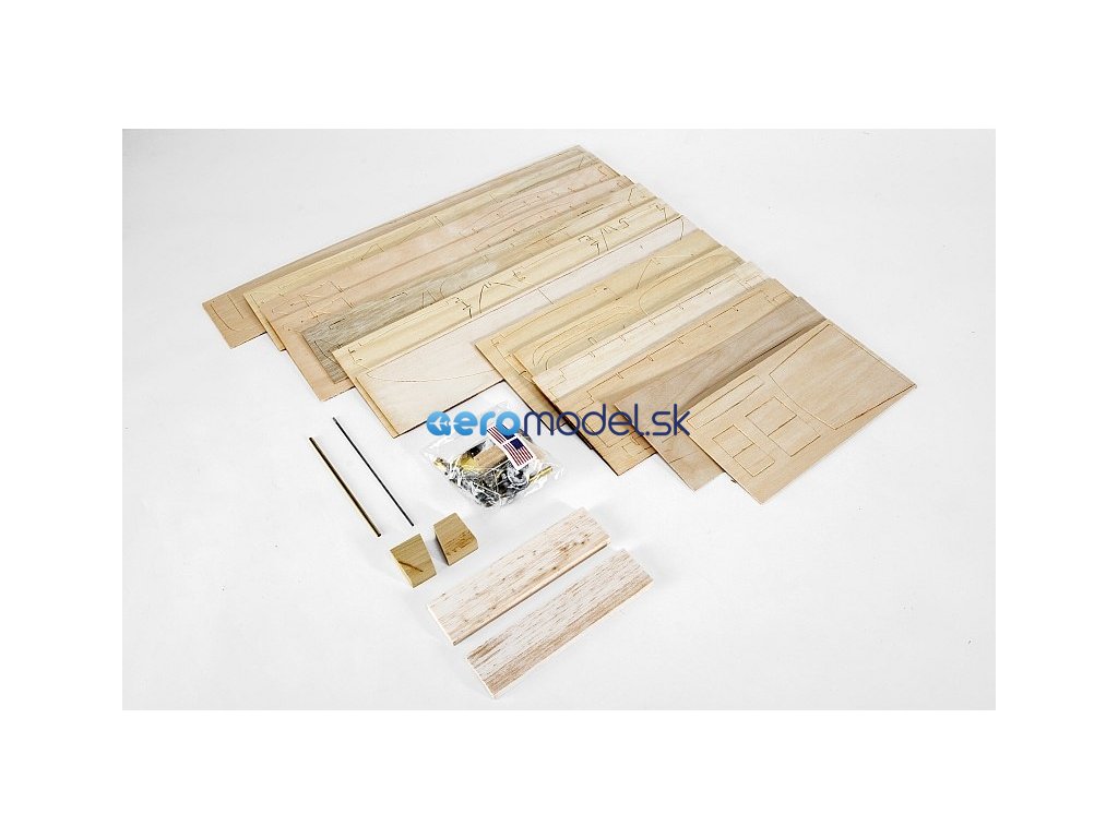 Stavebnice obsahuje: předseknuté překližkové díly trupu, balsové plaňky na obšívku, vakuově lisované plastové díly nástavby, smrkové a plastové nosníky a tyčinky, odlévané kovové díly a další maketové příslušenství, elektromotor 4,8 V, lodní hřídel s pouzdrem a dvoulistým šroubem 25 mm, stavební plán obsahující třípohledový výkres lodi a perspektivní nákresy jednotlivých kroků stavby, návod ke stavbě.